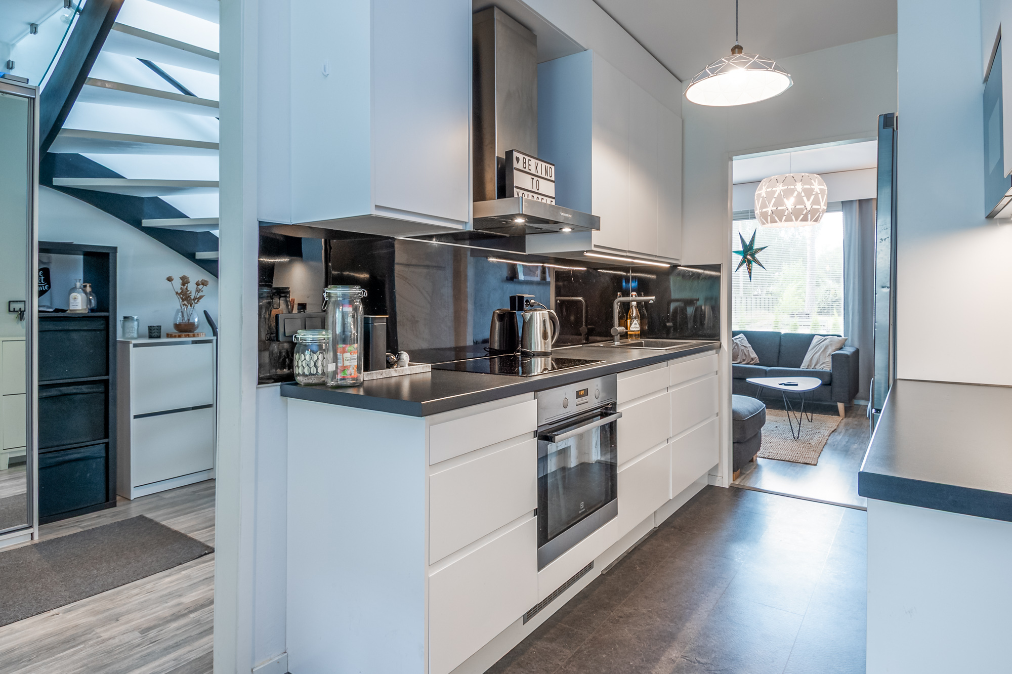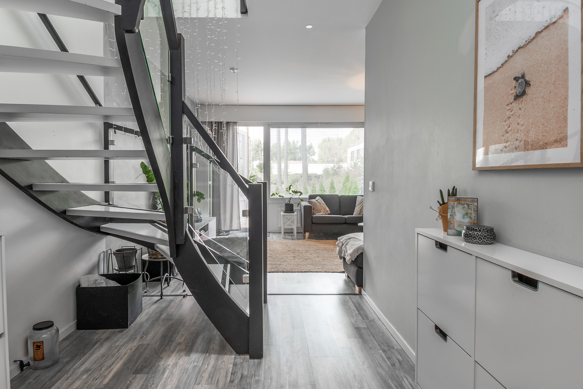 Välskött radhustrea i ett robust radhus i Sunnanvik-området nära havet. Köket, separat toalett och alla ytor renoverades 2018–2019. Trappräcket har ersatts med ett elegant glas räcke.