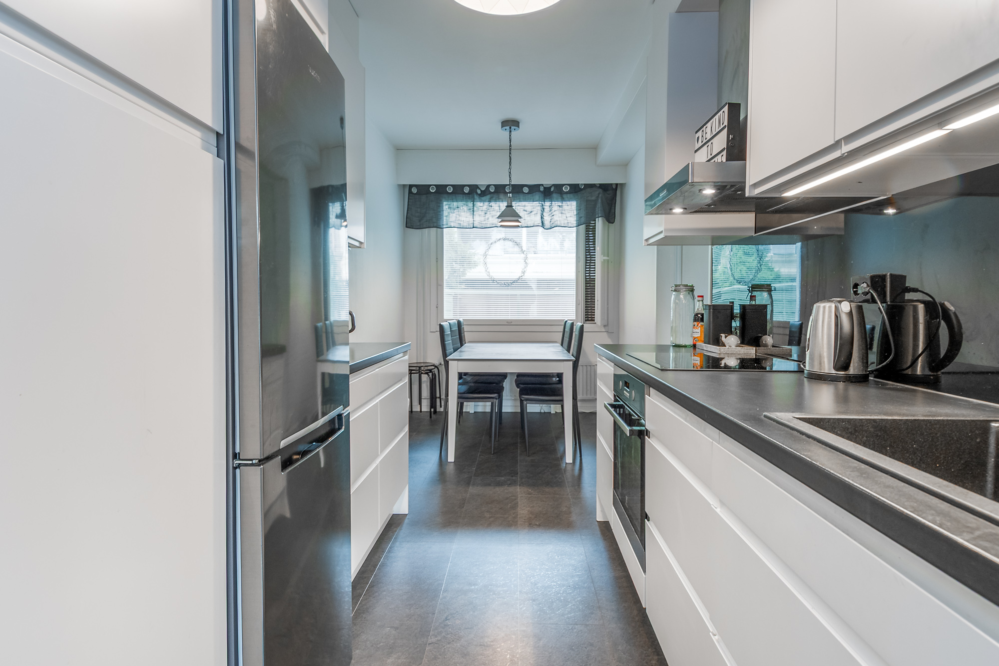 Hyväkuntoinen rivitalokolmio jykevässä, betonirakenteisessa rivitaloyhtiössä Suvilahden merenläheisellä alueella. Keittiö, erillinen wc ja kaikki pinnat uusittu vuosien 2018-2019 aikana. Portaikon kaiteet vaihdettu tyylikkäisiin lasikaiteisiin.