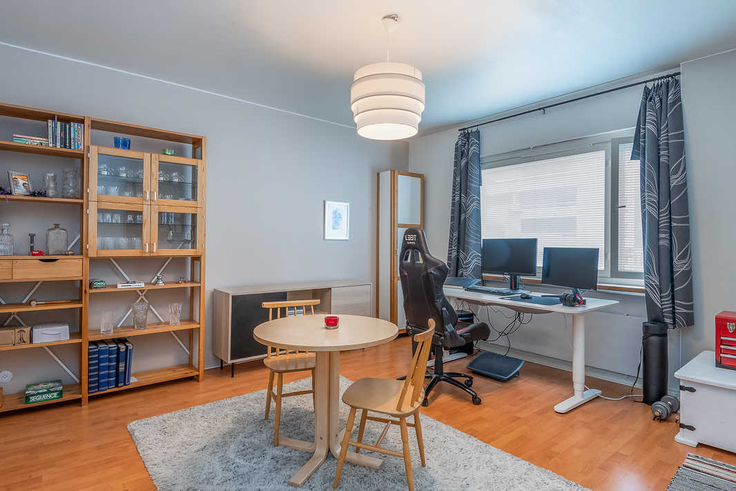 Ensimmäisen asuinkerroksen asunto, jossa toimiva pohjaratkaisu. Tilava olohuone, jonka yhteydessä on vaatehuone. Kylpyhuoneessa on lattialämmitys sekä pesukoneliitäntä. Keittiötä on päivitetty, ja se on varustettu induktioliedellä, jossa on integroitu liesituuletin.