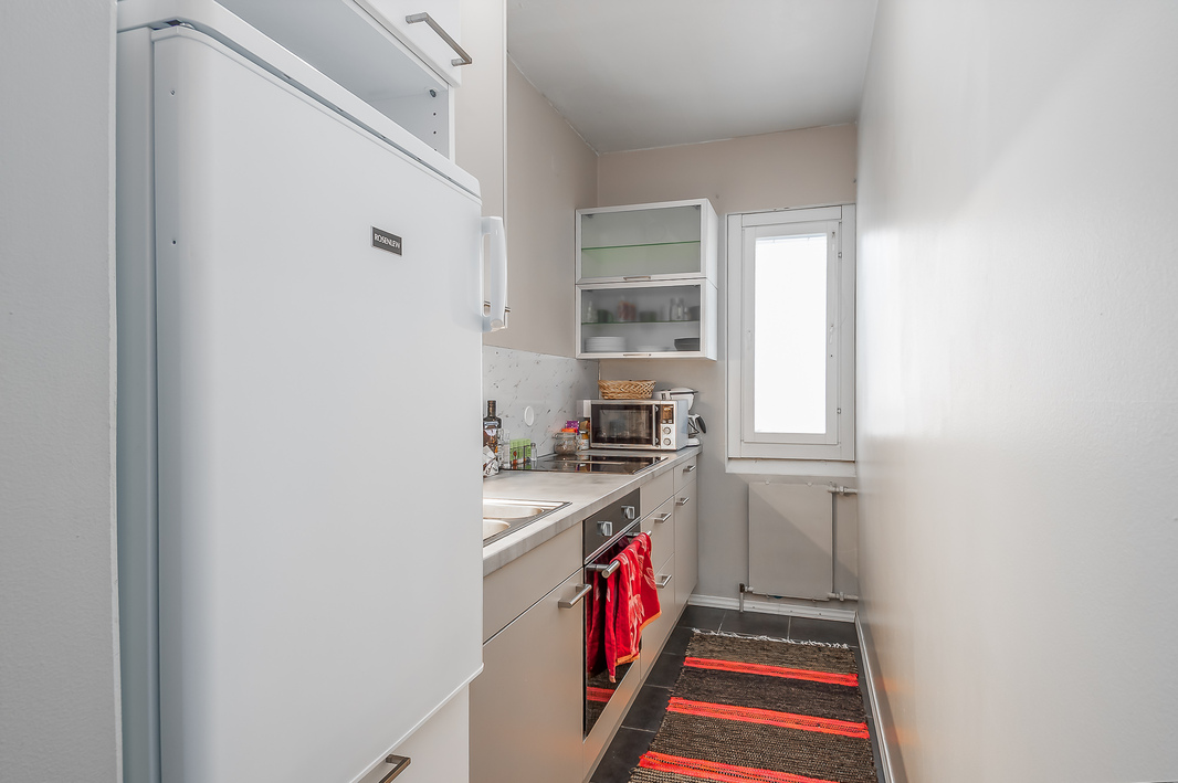 Bostad på första boendevåningen med en funktionell planlösning. Rymligt vardagsrum med anslutande klädkammare. Badrummet är utrustat med golvvärme samt anslutning för tvättmaskin. Köket har uppdaterats och är utrustat med induktionsspis med integrerad spisfläkt.