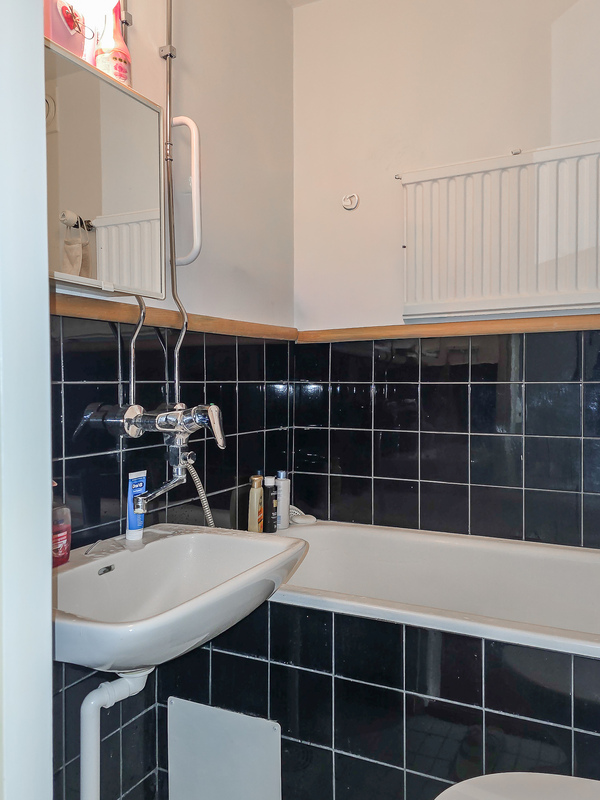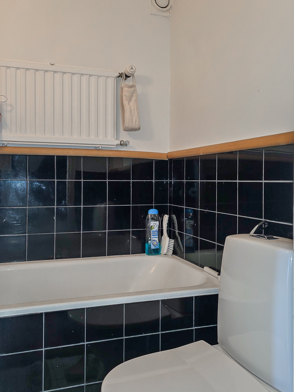 Kylpyhuoneen kuvaus Kylpyhuoneessa kylpyamme.