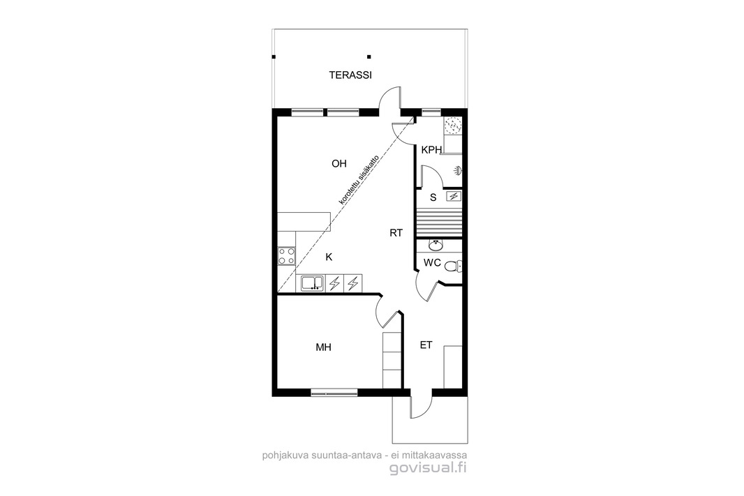 | Huoneistoselitelmä | 2h+k+s+kph+erillinen wc+lasitettu terassi |
