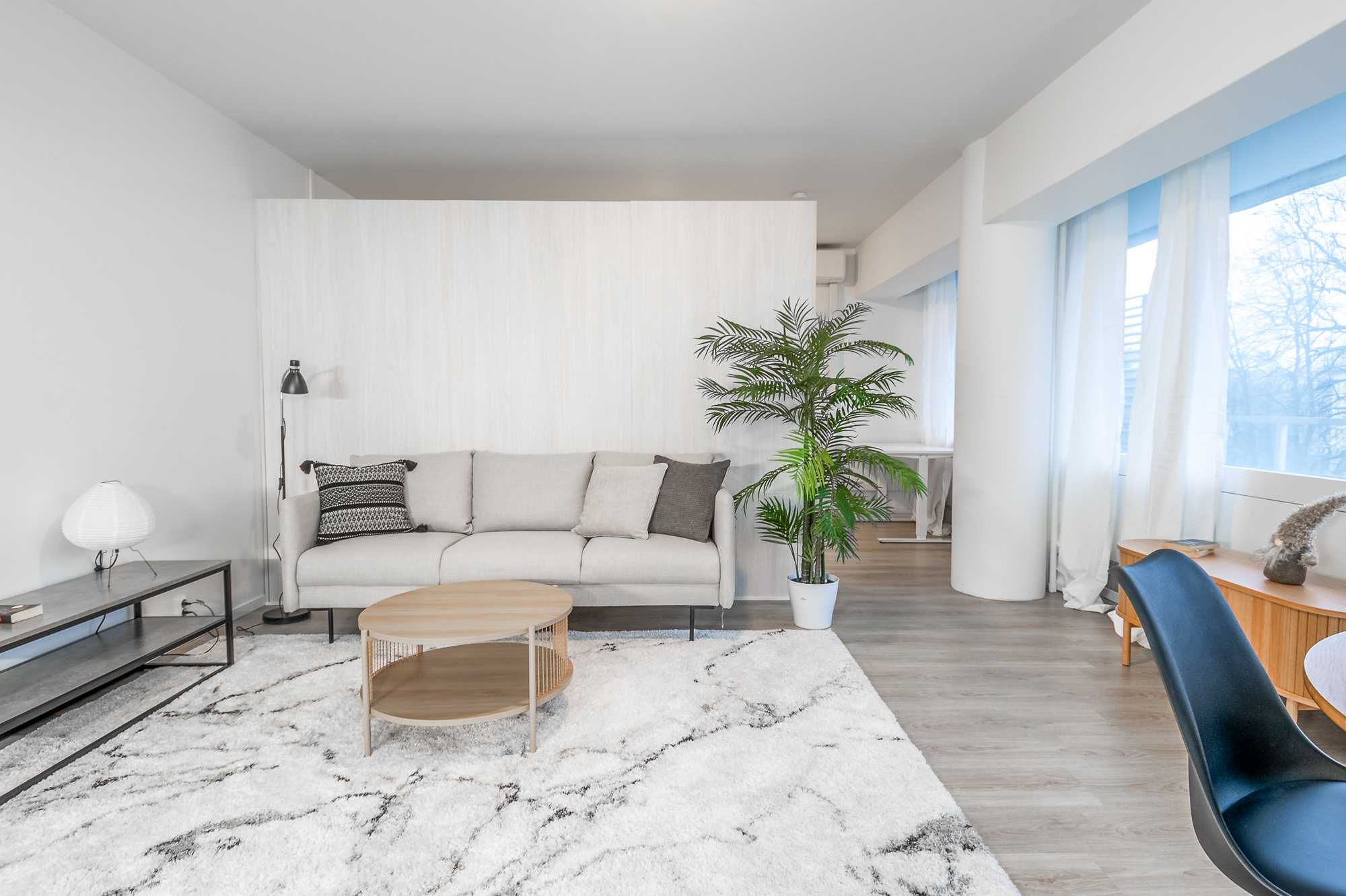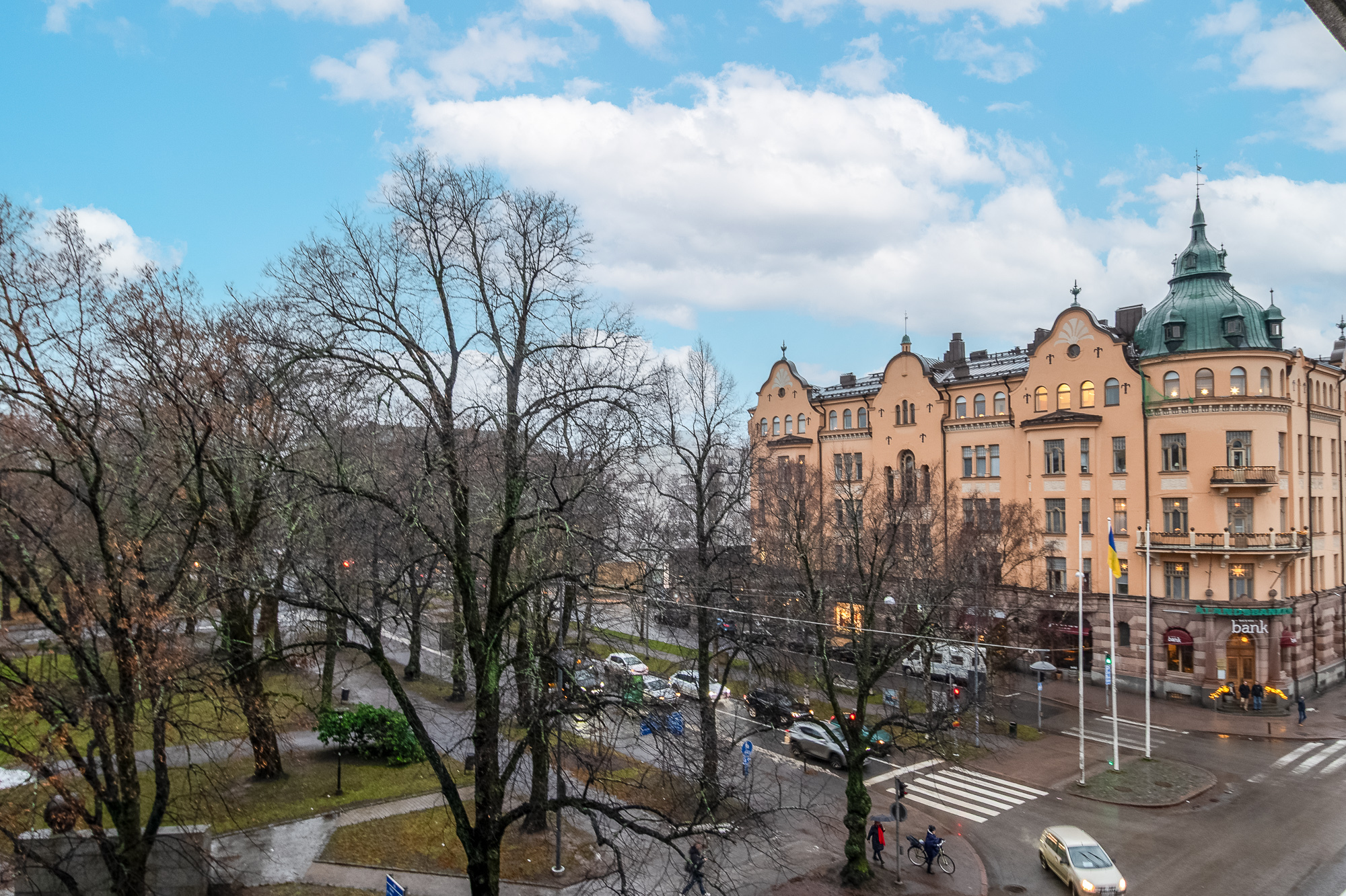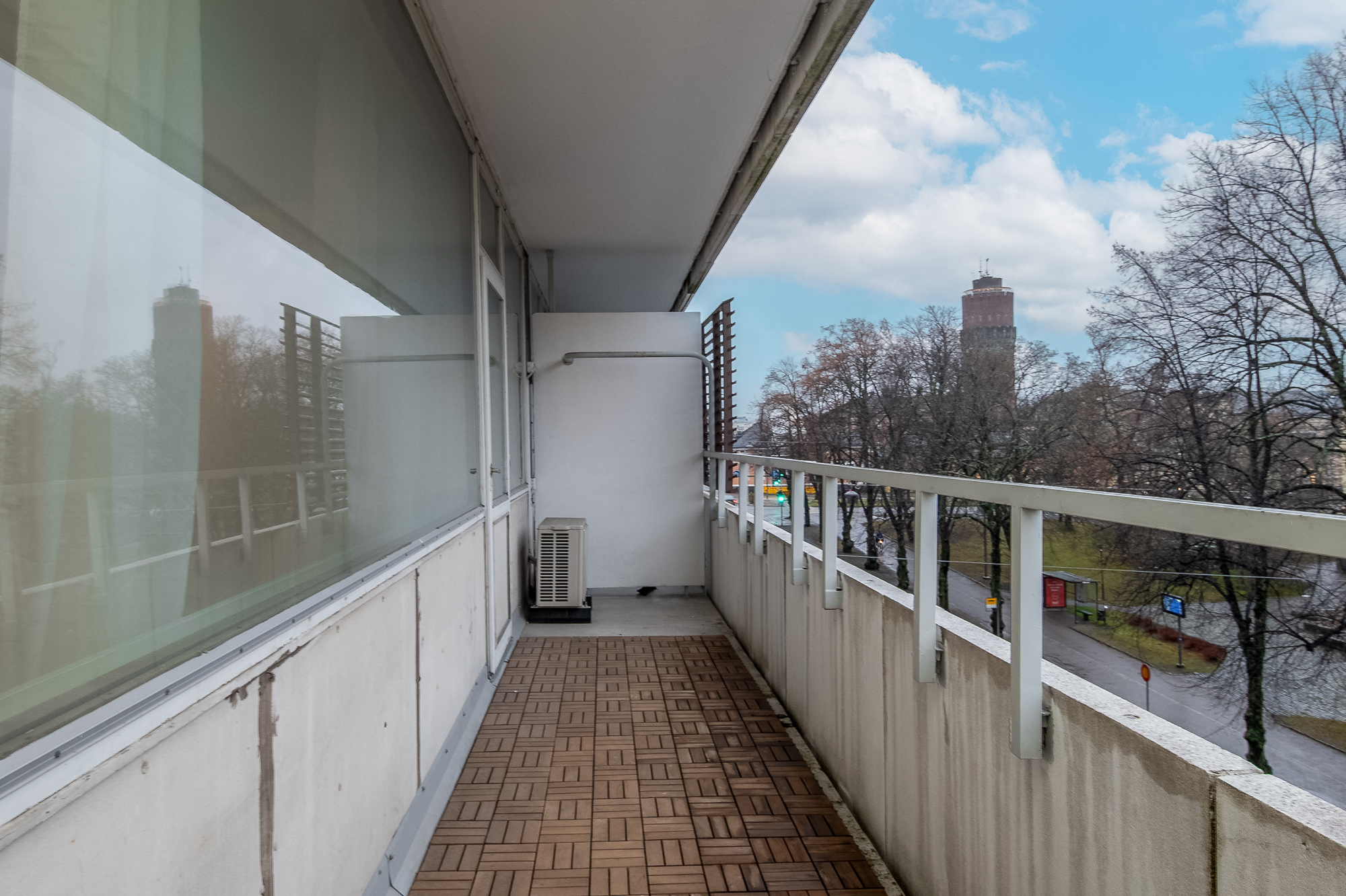 Loistavalla sijainnilla ydinkeskustassa – täysin remontoitu kaksio hissitalon viidennessä kerroksessa! Vuonna 2022 kokonaisuudessaan remontoitu asunto. Avara pohjaratkaisu yhdistää keittiön ja olohuoneen yhtenäiseksi ja viihtyisäksi oleskelutilaksi. Makuuhuoneessa on suuret liukuovikaapistot, joissa runsaasti säilytystilaa. Koko huoneiston levyinen (noin 8 m), länteen avautuva parveke tuo mukavasti lisätilaa. Kylpyhuoneessa on lattialämmitys, ja pesukone sisältyy kauppahintaan. Huoneistossa on ilmanviilennin kesähelteiden helpotukseksi. Taloyhtiö sijaitsee omalla tontilla. Asunto on heti vapaa! Utmärkt läge i stadens absoluta centrum – totalrenoverad tvåa på femte våningen i hus med hiss! Lägenheten totalrenoverades år 2022. Den öppna planlösningen förenar kök och vardagsrum till en trivsam och rymlig helhet. I sovrummet finns stora skjutdörrsgarderober med gott om förvaringsutrymme. Balkongen (ca 8 m) sträcker sig längs hela lägenheten och vetter mot väster, vilket ger extra utrymme. Badrummet är utrustat med golvvärme, och tvättmaskinen ingår i köpesumman. Bostadsbolaget står på egen tomt. Lägenheten är genast ledig!