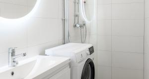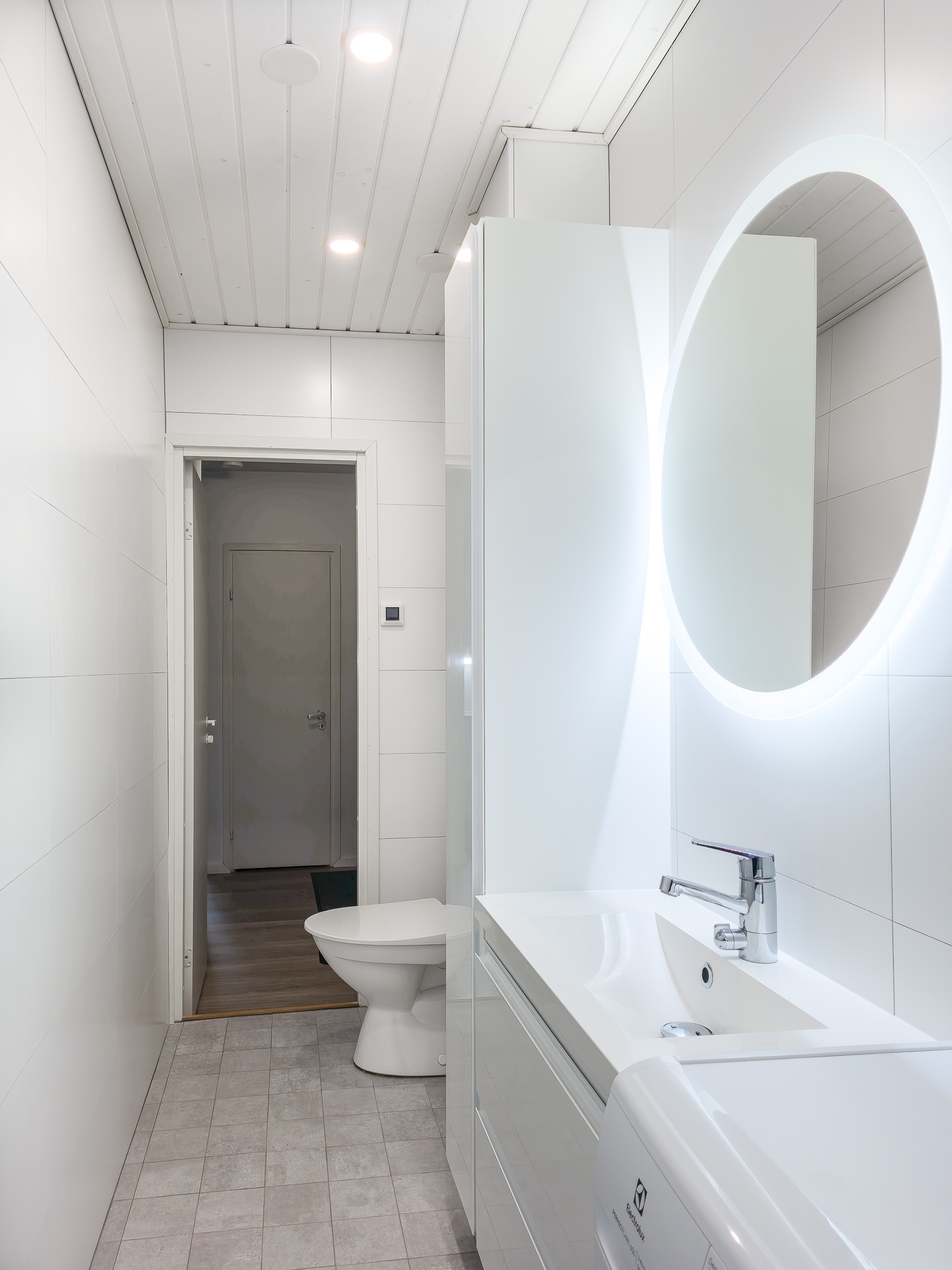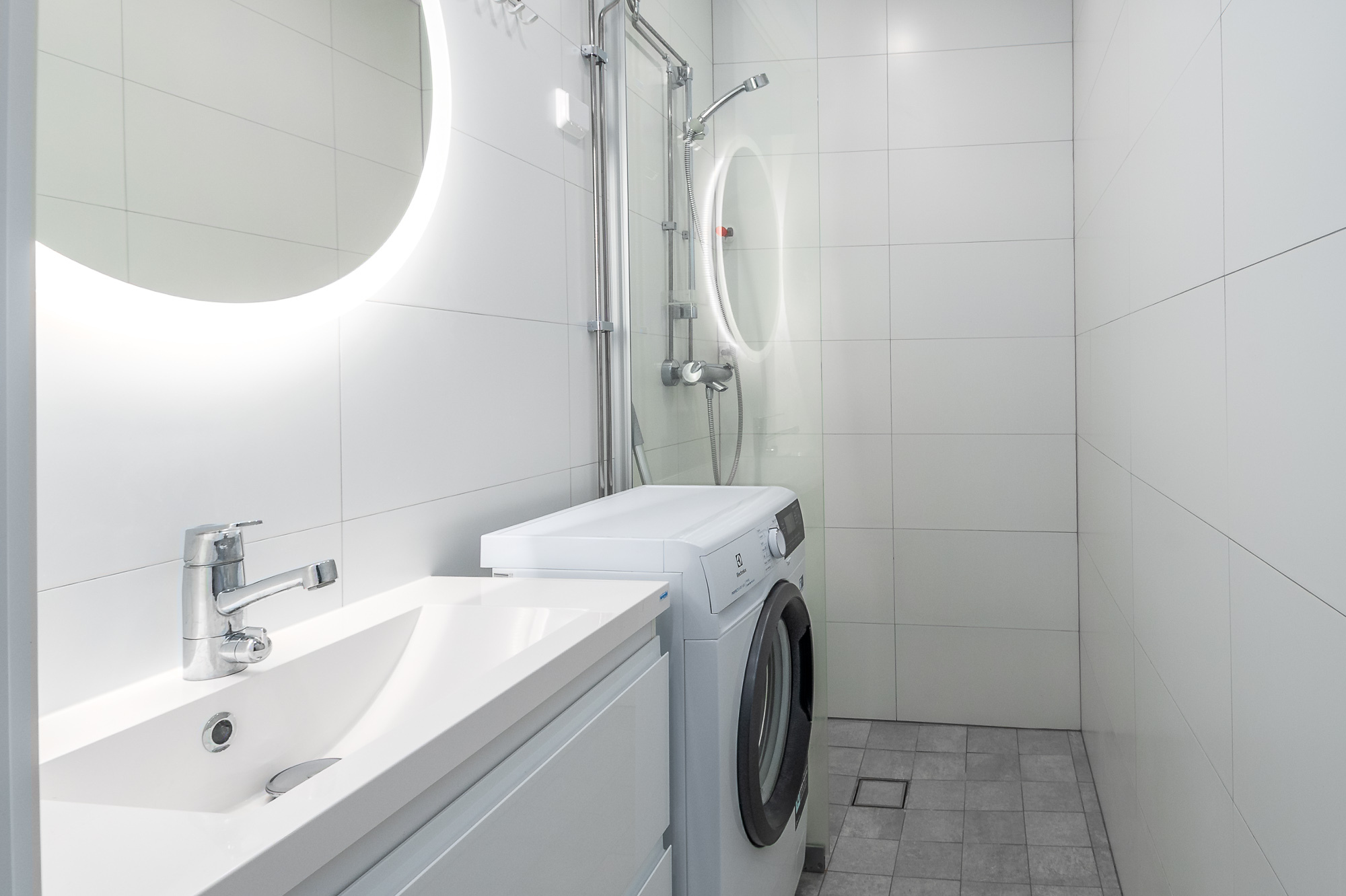 Vuonna 2022 täysin remontoitu kylpyhuone. Lasinen suihkuseinä, pyyhekuivain. Pesukone sisältyy hintaan. Lattialämmitys.