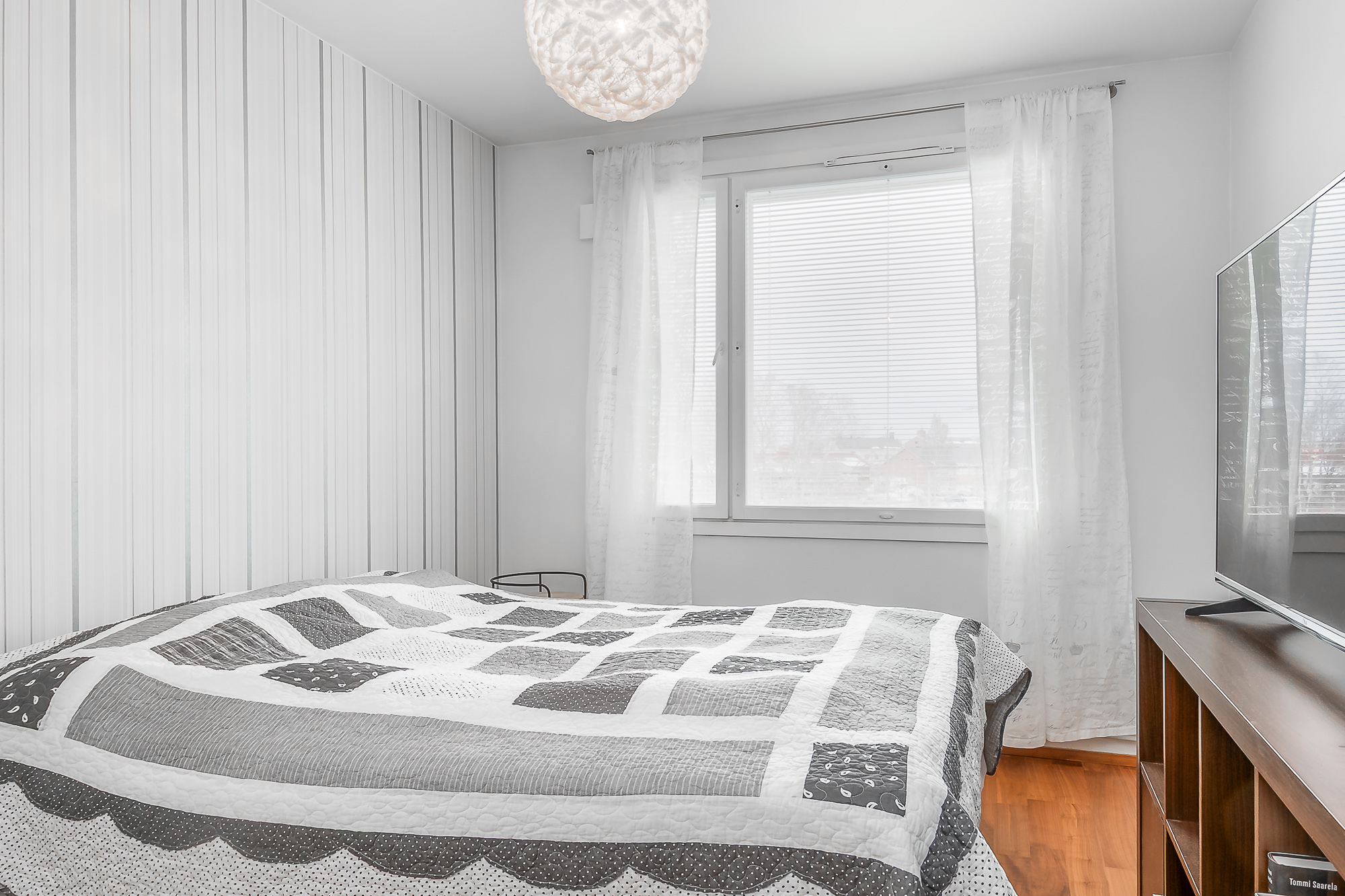Kaksi makuuhuonetta, molemmissa vaatekaapistot.