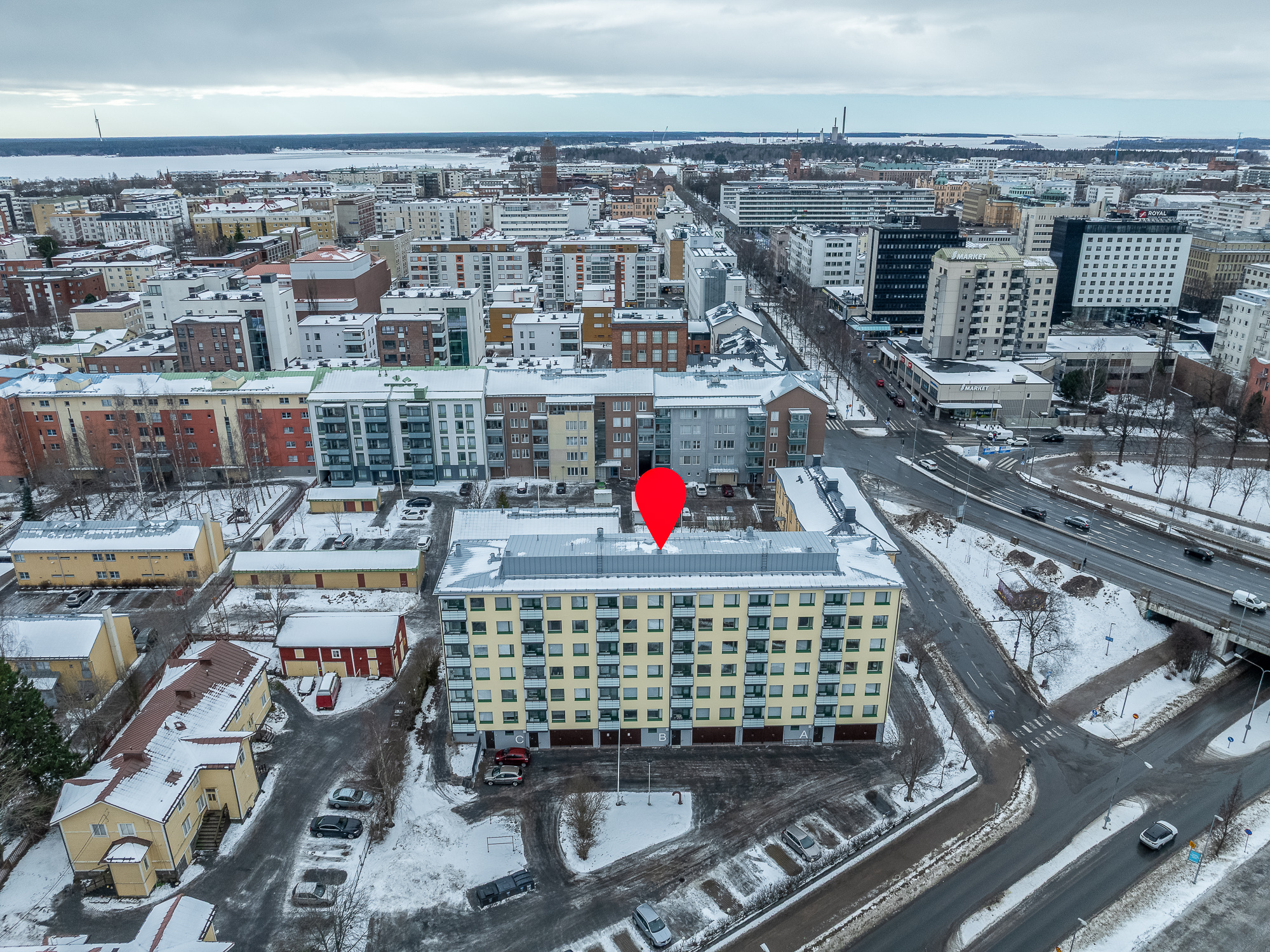 Tilava kolmio hissitalon toisessa kerroksessa Vaasan keskustassa!
