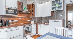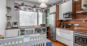 Puustellin keittiö, remontoitu vuonna 2011. Jääkaappi, pakastin, liesi, liesituuletin, mikroaaltouuni, astianpesukone.