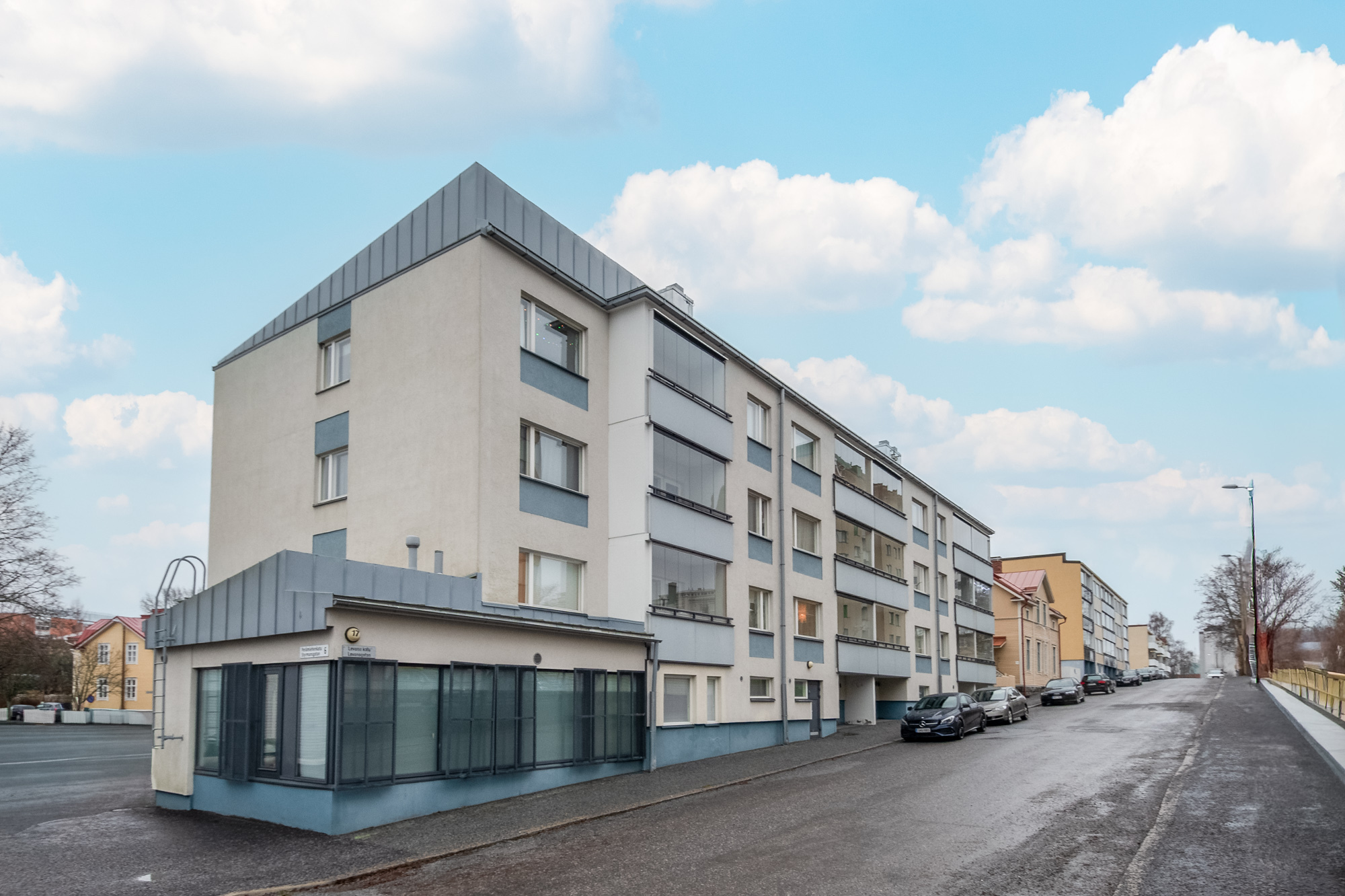 Hyvällä sijainnilla lähellä Palosaaren campus-aluetta myydään vuonna 1964 valmistunut ja vuonna 2001 peruskorjattu kerrostalo. Kiinteistössä on 21 vuokra-asuntoa (5 yksiötä, 13 kaksiota ja 3 kolmiota) sekä 14 autotolppapaikkaa. Kiinteistö sijaitsee omalla 1 450 m²:n tontilla ja on liitetty kaukolämpöverkkoon. Kiinteistö on osa Lakea Oy:n konkurssipesää. Tiedustelut ja tarjoukset: Annala & Kurtén Kiinteistönvälitys Oy LKV Tomas Kurtén, p. 0400 827 947, tomas.kurten@annalakurten.fi Med ett bra läge nära Brändös campusområde säljs ett våningshus byggt 1964 och grundrenoverat 2001. Fastigheten omfattar 21 hyreslägenheter (5 ettor, 13 tvåor och 3 treor) samt 14 parkeringsplatser med elstolpe. Fastigheten ligger på en egen tomt om 1 450 m² och är ansluten till fjärrvärmenätet. Fastigheten ingår i konkursboet efter Lakea Oy. För förfrågningar och anbud: Annala & Kurtén Fastighetsförmedling Oy LKV Tomas Kurtén, tfn 0400 827 947, tomas.kurten@annalakurten.fi