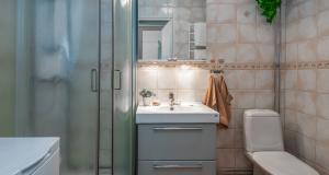 Kylpyhuoneessa suihkukaappi ja pesukoneliitäntä. Lattialämmitys.