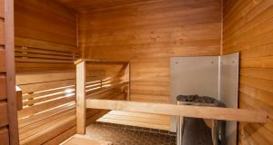 Bolagets bastuavdelning har simbassäng. Fastigheten har fjärrvärme och äger tomten.