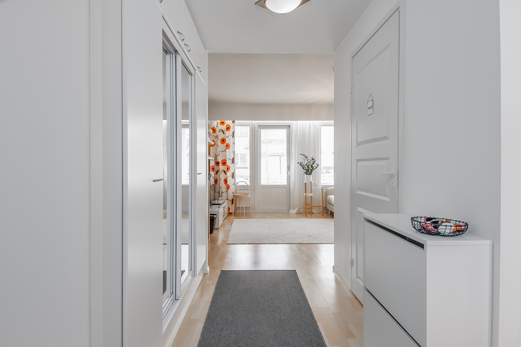 Kaikissa asuintiloissa yhtenäinen parkettilattia.