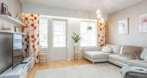 Valoisa keittiö. Induktioliesi ja liesituuletin uusittu. Kaapinovet juuri maalattu.