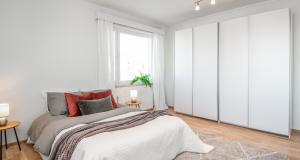 Kolme makuuhuonetta, joista kaksi erittäin tilavia ja kolmaskin hyvän kokoinen. Yksi makuuhuoneista alunperin kaksi erillistä huonetta ja helppo haluttaessa jakaa takaisin kahdeksi huoneeksi.