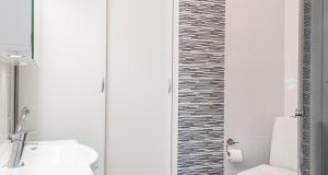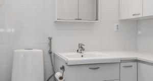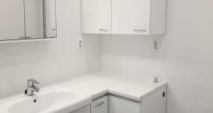 Koko asunto remontoitiin vuonna 2015, jolloin myös pesutilat uusittiin ja suunniteltiin uudelleen. Nykyisellään asunnossa on kylpyhuoneen lisäksi kodinhoitotila erillisen wc:n yhteydessä.