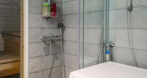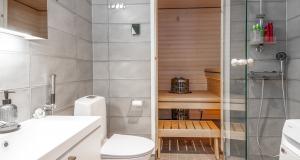 Kylpyhuone oman saunan yhteydessä. Tilaa pesutornille.