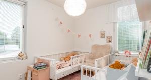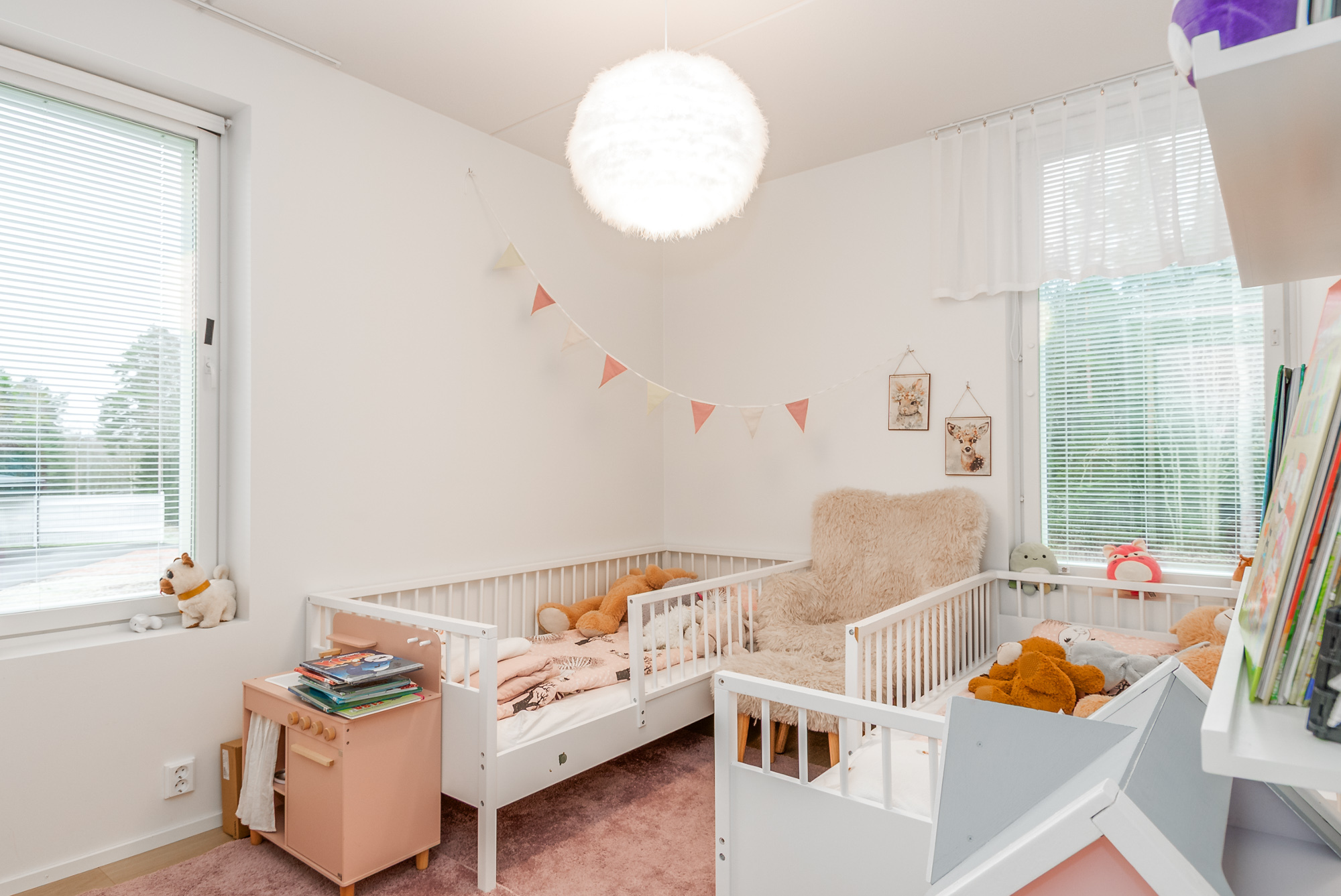 Kaksi makuuhuonetta, joissa molemmissa vaatekaapisto.