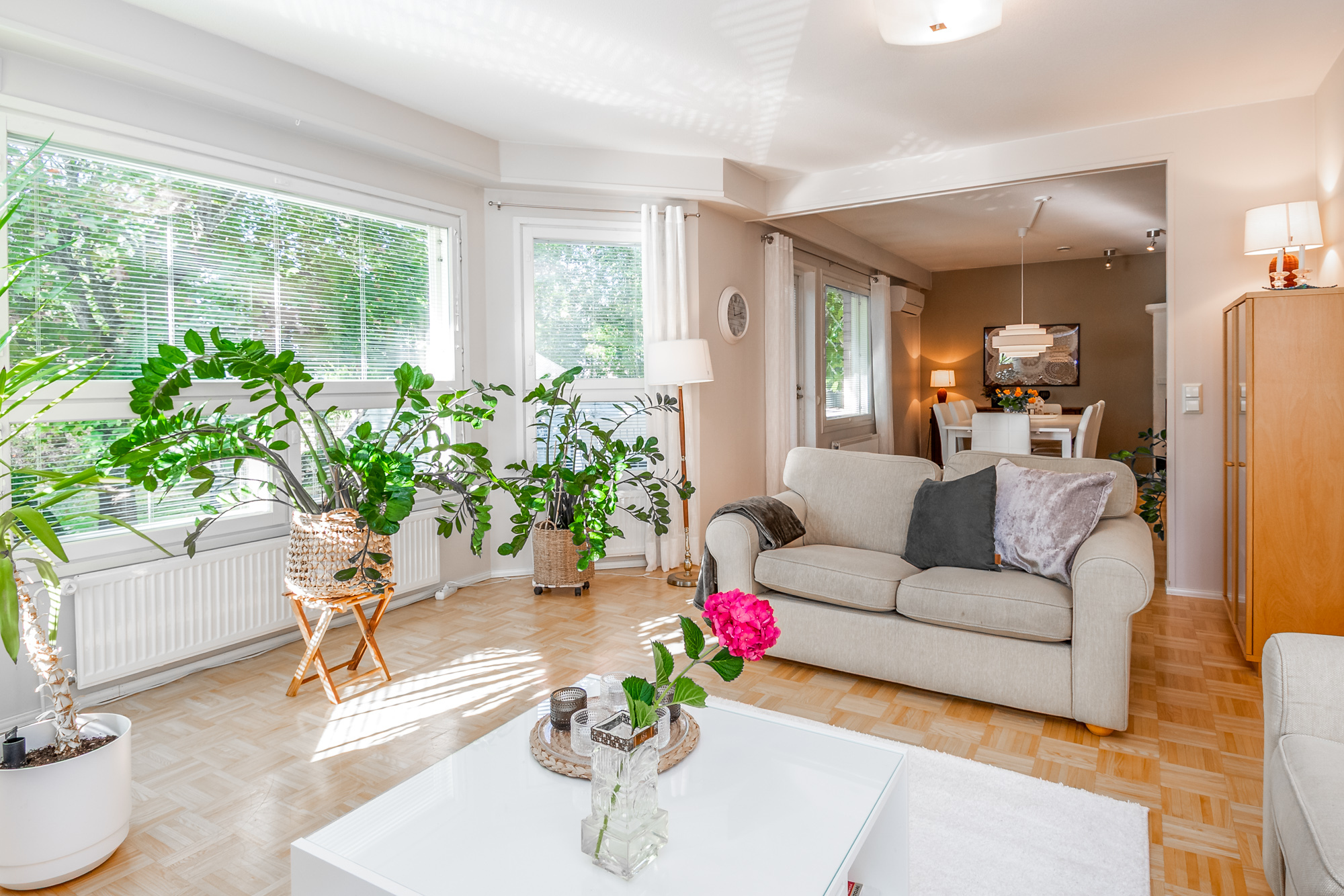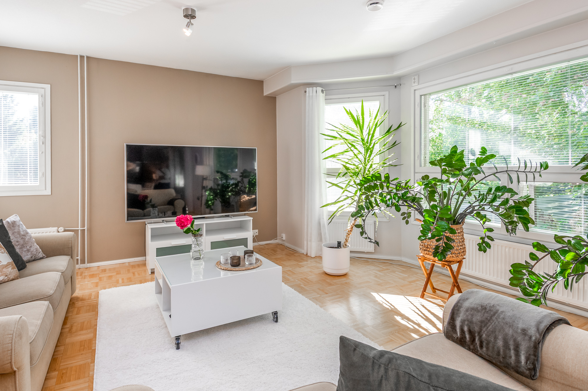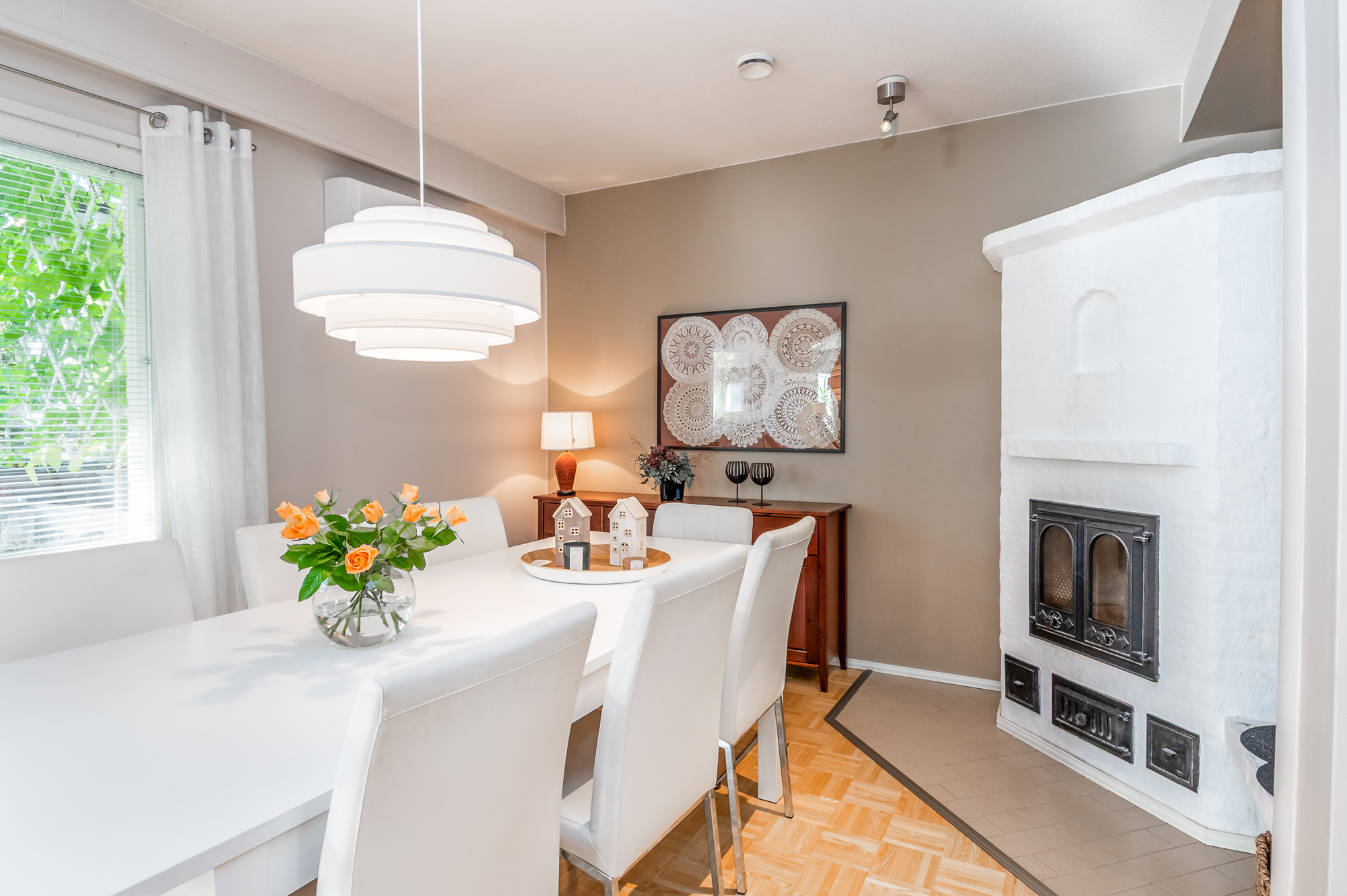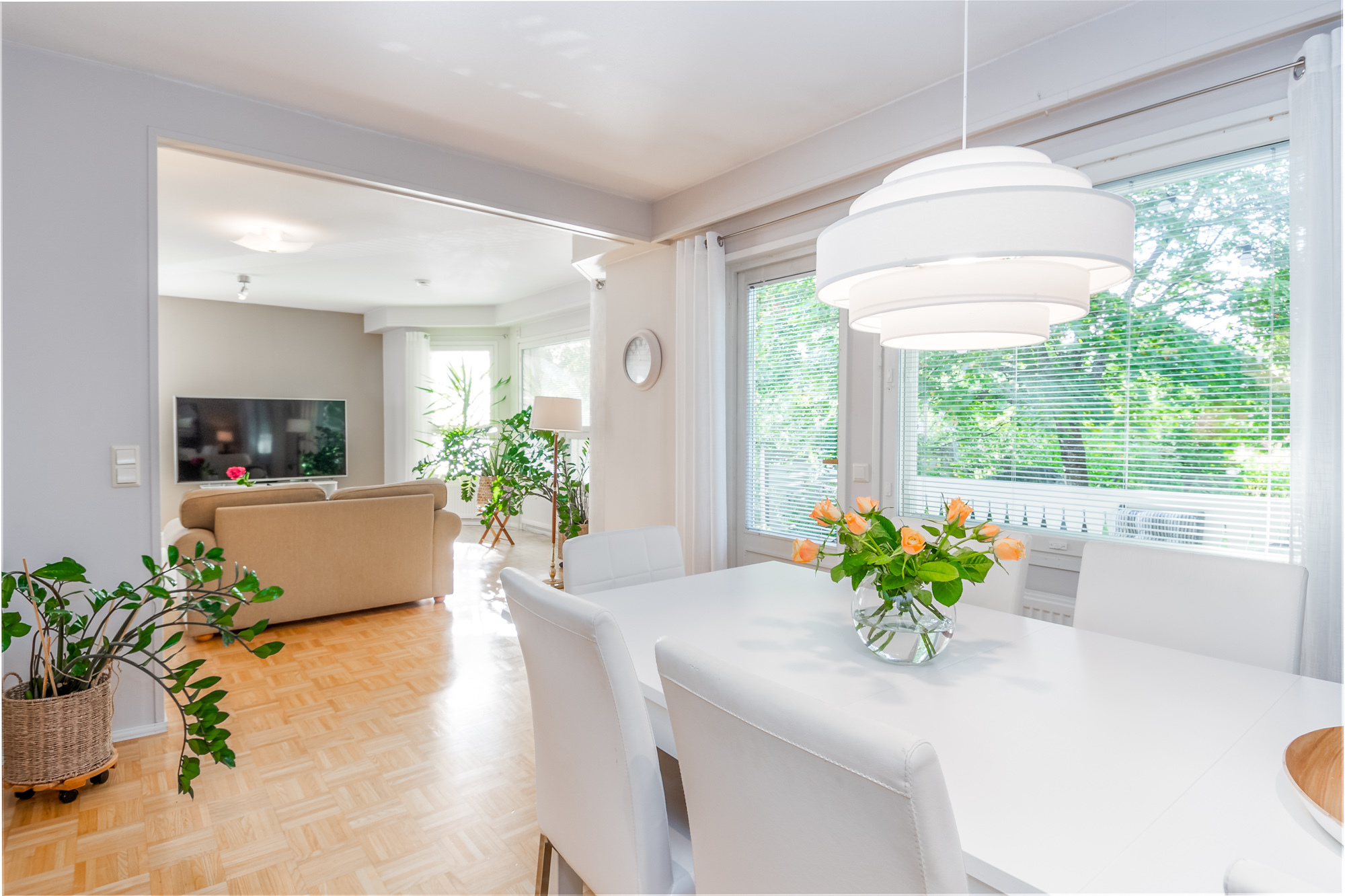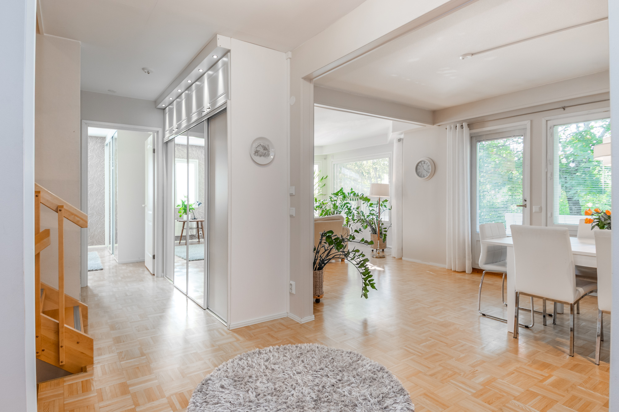 Erittäin tilava paritaloasunto asunto-osakeyhtiömuotoisessa taloyhtiössä Huutoniemellä kattavien palveluiden äärellä! Tilat jakautuvat kolmeen kerrokseen, joista keskikerroksessa oleskelutilat muodostavat yhdessä keittiön kanssa todella ison ja avaran yhteisen tilan. Olohuoneesta kulku pienen parveketasanteen kautta omaan, suojaisaan puutarhaan, joka avautuu lounaan suuntaan. Puutarhasta myös kulku autotallille sekä taloyhtiön isolle parkkialueelle. Makuuhuoneista yksi on alakerrassa ja kolme yläkerrassa. Kaikki makuuhuoneet ovat tilavia - osa jopa erittäin tilavia. Kellarikerroksessa on takkahuone, jota voi käyttä esim vieras- tai työhuoneena. Asunnossa on loistavat pesutilat; ylä- ja alakerrassa on tilavat kylpyhuoneet, joissa molemmissa on suihku. Saunatilat ovat kellarikerroksessa, samoin kuin erillinen kodinhoitohuone ja tilava, lämmin varastohuone. Kaikissa pesutiloissa ja koko kellarikerroksessa on vesikiertoinen lattialämmitys. Taloyhtiö on omalla tontilla ja kaukolämmössä. Vastike on erittäin edullinen - ainoastaan 387 e/kk sisältäen jopa vesimaksun ja luonnollisesti kaikki muut yhtiölle kuuluvat maksut. Asunnolle kuuluu lämmin autotalli ja kaksi autopaikkaa autotallin edessä - näillä paikoilla sähköauton latausasemat. Taloyhtiön tontilla on lisäksi iso, asfaltoitu parkkialue, missä on tilaa säilyttää monenlaisia ajoneuvoja, veneitä tai peräkärryjä. Vastaavanlaisia isoja asuntoja on harvoin tarjolla. Varainsiirtovero vain 1,5 %! En mycket rymlig parhuslägenhet i ett bostadsbolag i Roparnäs, nära till all service! Rummen är fördelade på tre våningar, med vardagsrum på mellanvåningen som tillsammans med köket bildar ett riktigt stort och rymligt gemensamt utrymme. Från vardagsrummet utgång via en liten balkong till en privat, skyddad trädgård som vetter mot sydväst. Från trädgården även tillgång till garaget och bostadsbolagets stora parkeringsplats. Ett av sovrummen ligger på nedervåningen och tre på övervåningen. Alla sovrum är rymliga, vissa till och med mycket rymliga. I källaren finns ett rum med öppen spis som kan användas t.ex. som gästrum eller arbetsrum. Lägenheten har utmärkta tvättmöjligheter; det finns rymliga badrum på både övre och nedre våningen, båda med dusch. Bastufaciliteterna finns i källaren, liksom ett separat tvättrum och ett rymligt, uppvärmt förråd. Alla badrum och hela källaren har vattenburen golvvärme. Bostadsbolaget ligger på en egen tomt och har fjärrvärme. Vederlaget är mycket förmånligt – endast 387 euro/månad, inklusive vattenavgifter och naturligtvis alla andra avgifter som ska betalas till bolaget. Till lägenheten hör ett uppvärmt garage och två parkeringsplatser framför garaget – dessa platser har ladd stationer för elbilar. Bostadsbolagets tomt har också en stor, asfalterad parkeringsplats med plats för förvaring av olika typer av fordon, båtar eller släpvagnar. Lägenheter i denna storlek finns sällan till salu. Överlåtelseskatt endast 1,5 %!