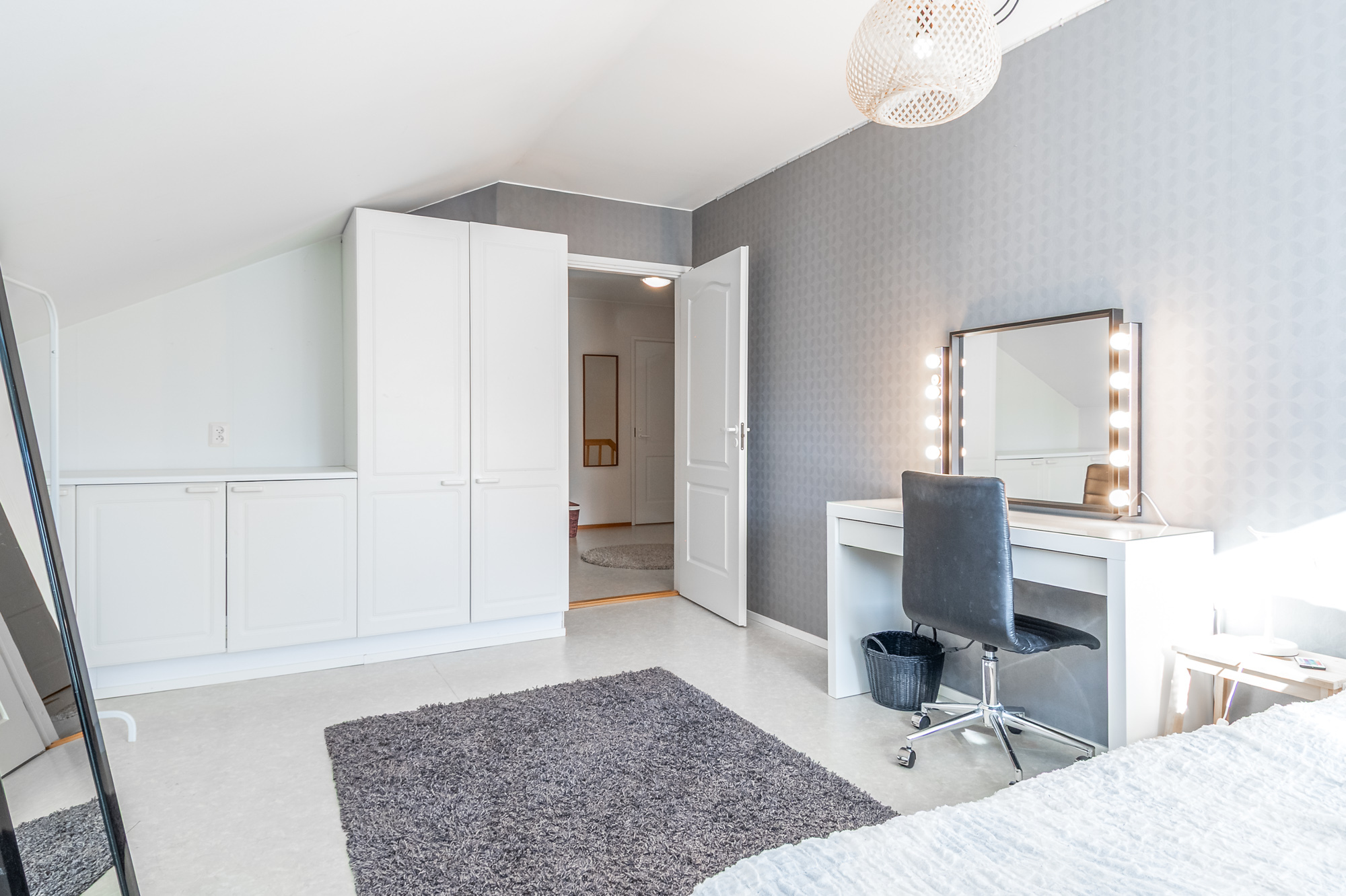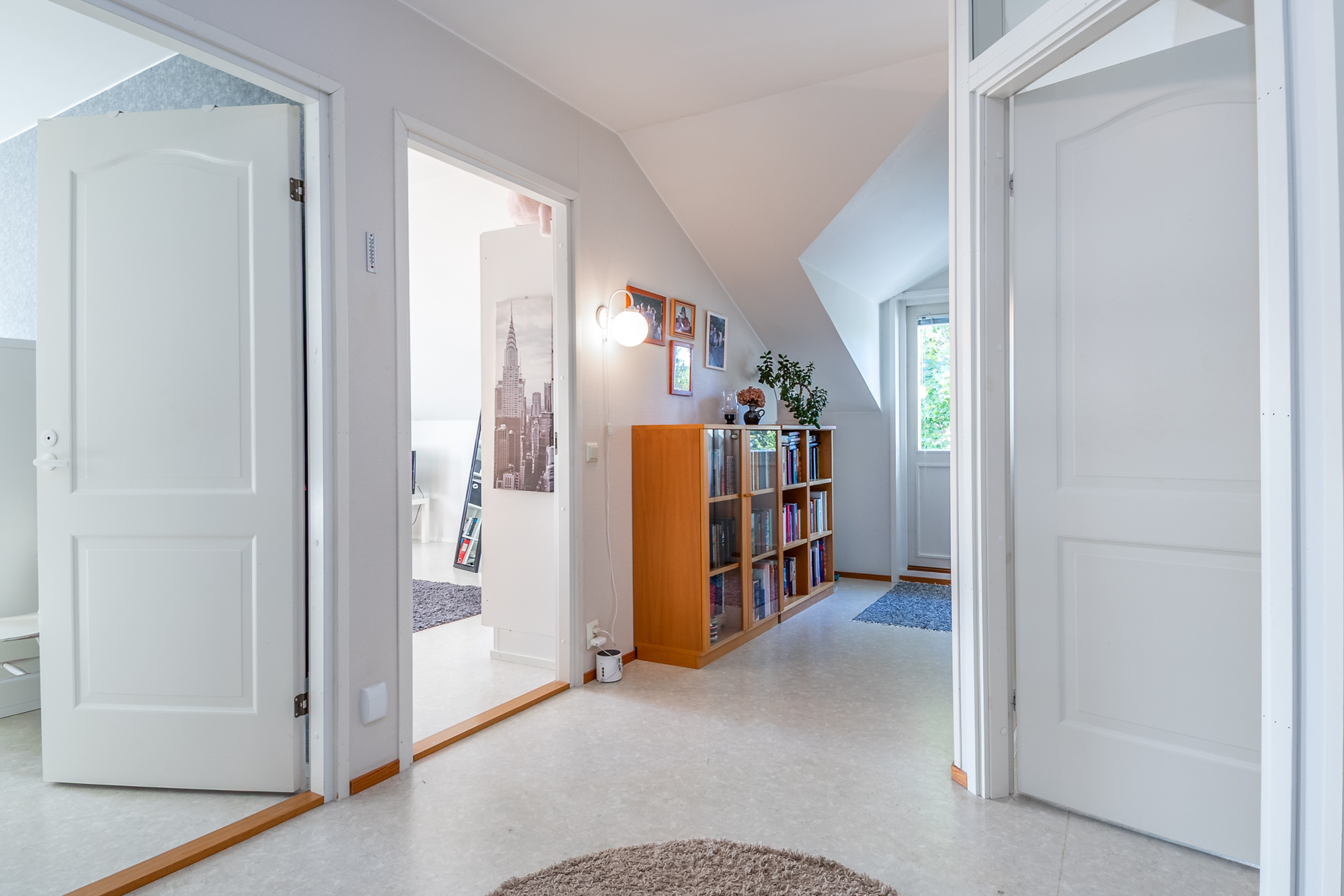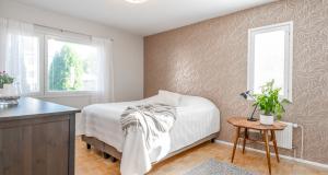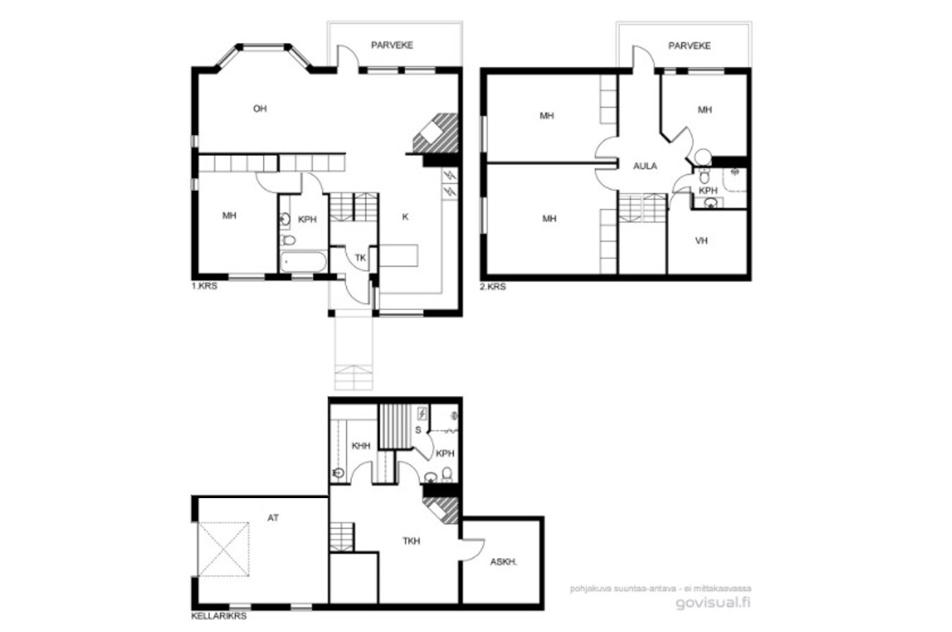 Alakerrassa yksi makuuhuoneista (parkettilattia). Kolme makuuhuonetta yläkerrassa. Kaikki makuuhuoneet tilavia, osa erittäin tilavia.