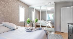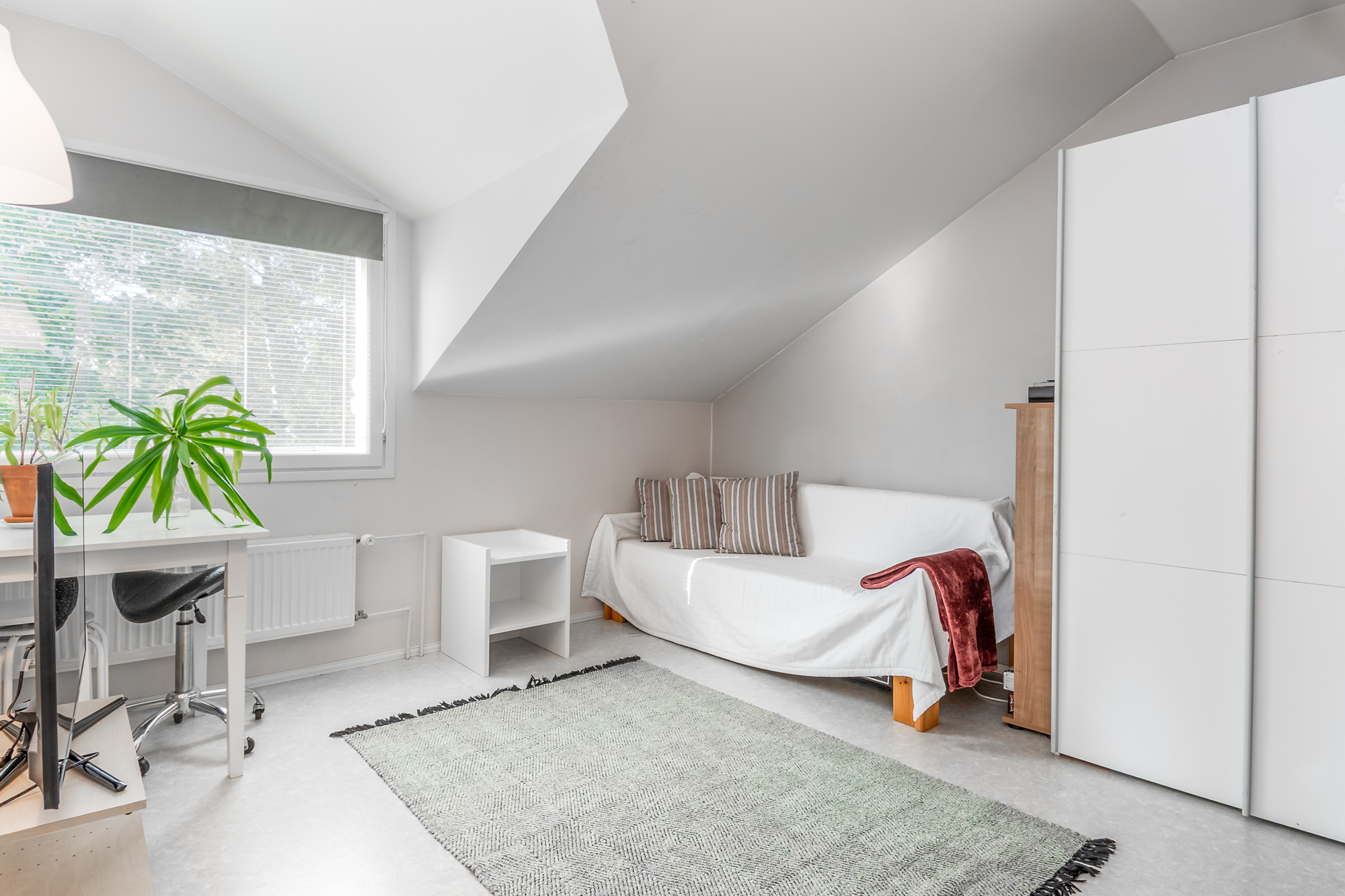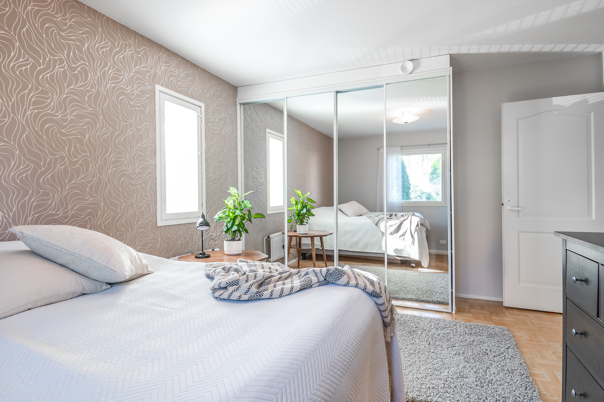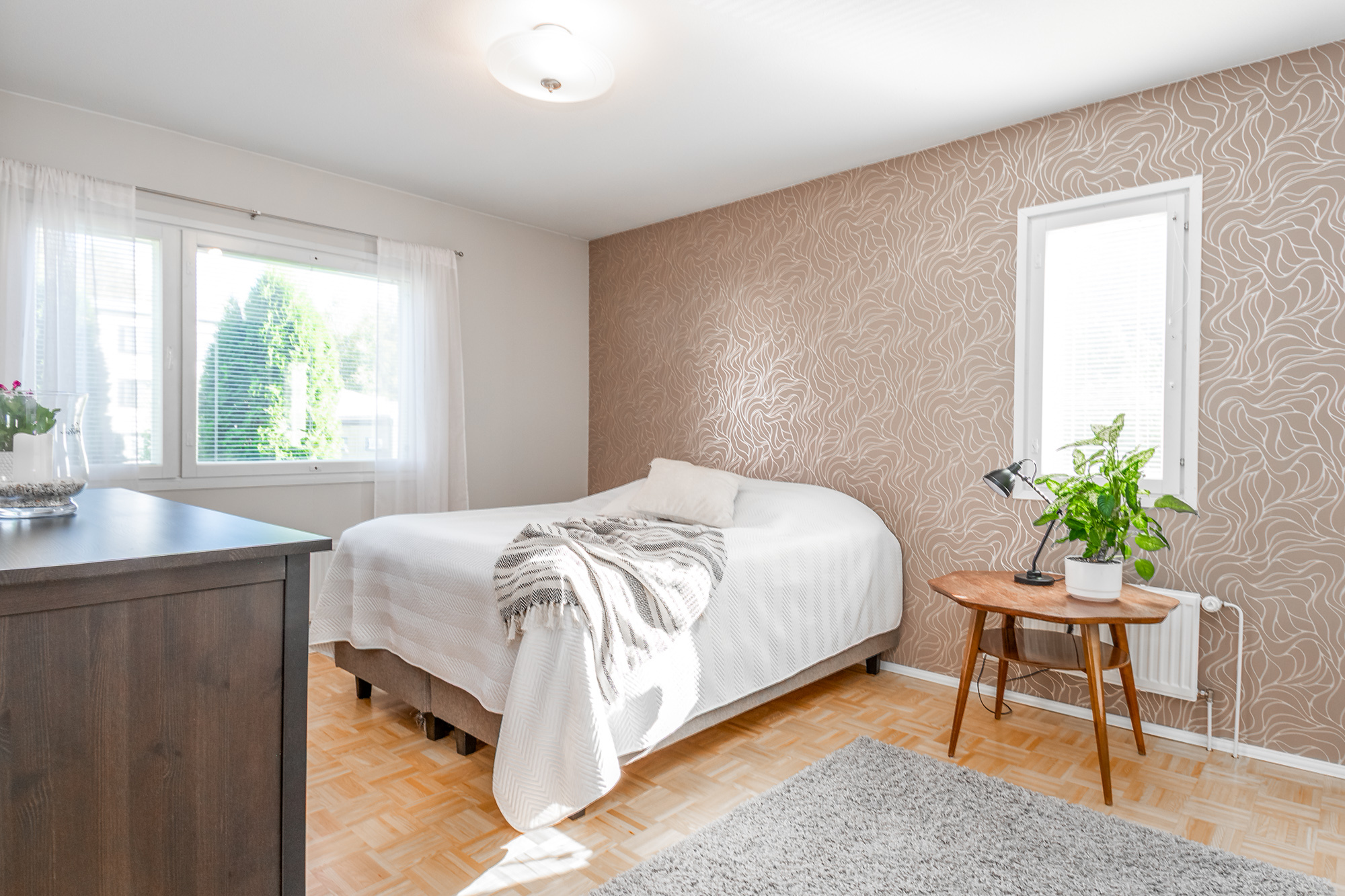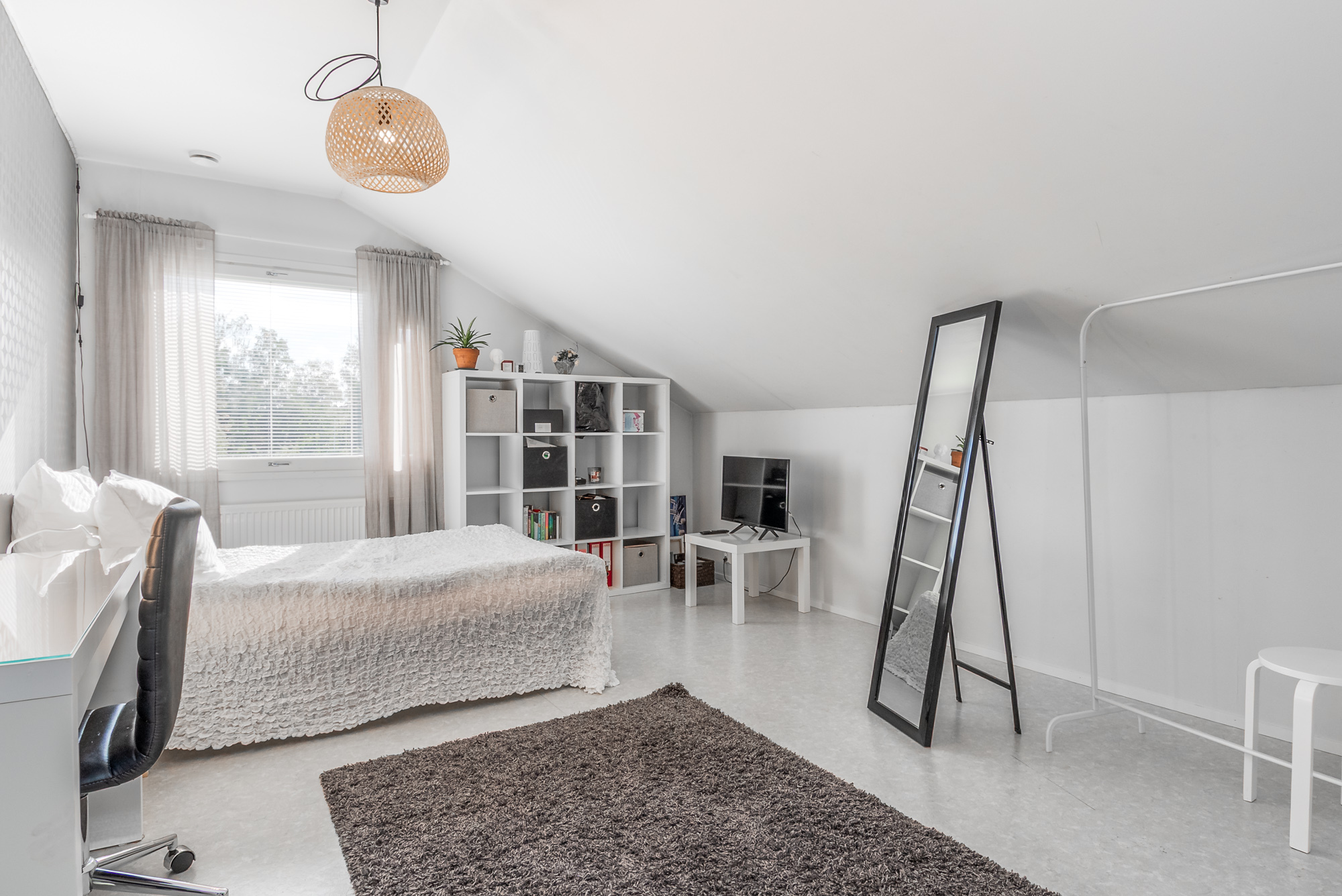Alakerrassa yksi makuuhuoneista (parkettilattia). Kolme makuuhuonetta yläkerrassa. Kaikki makuuhuoneet tilavia, osa erittäin tilavia.