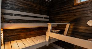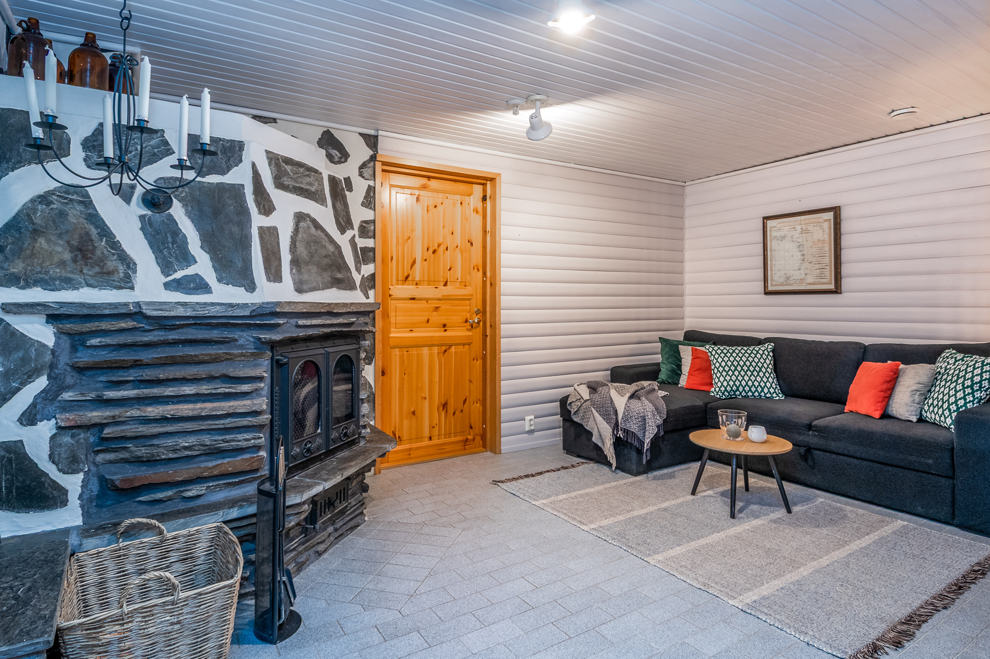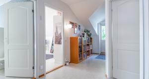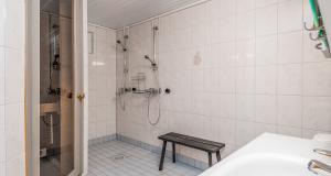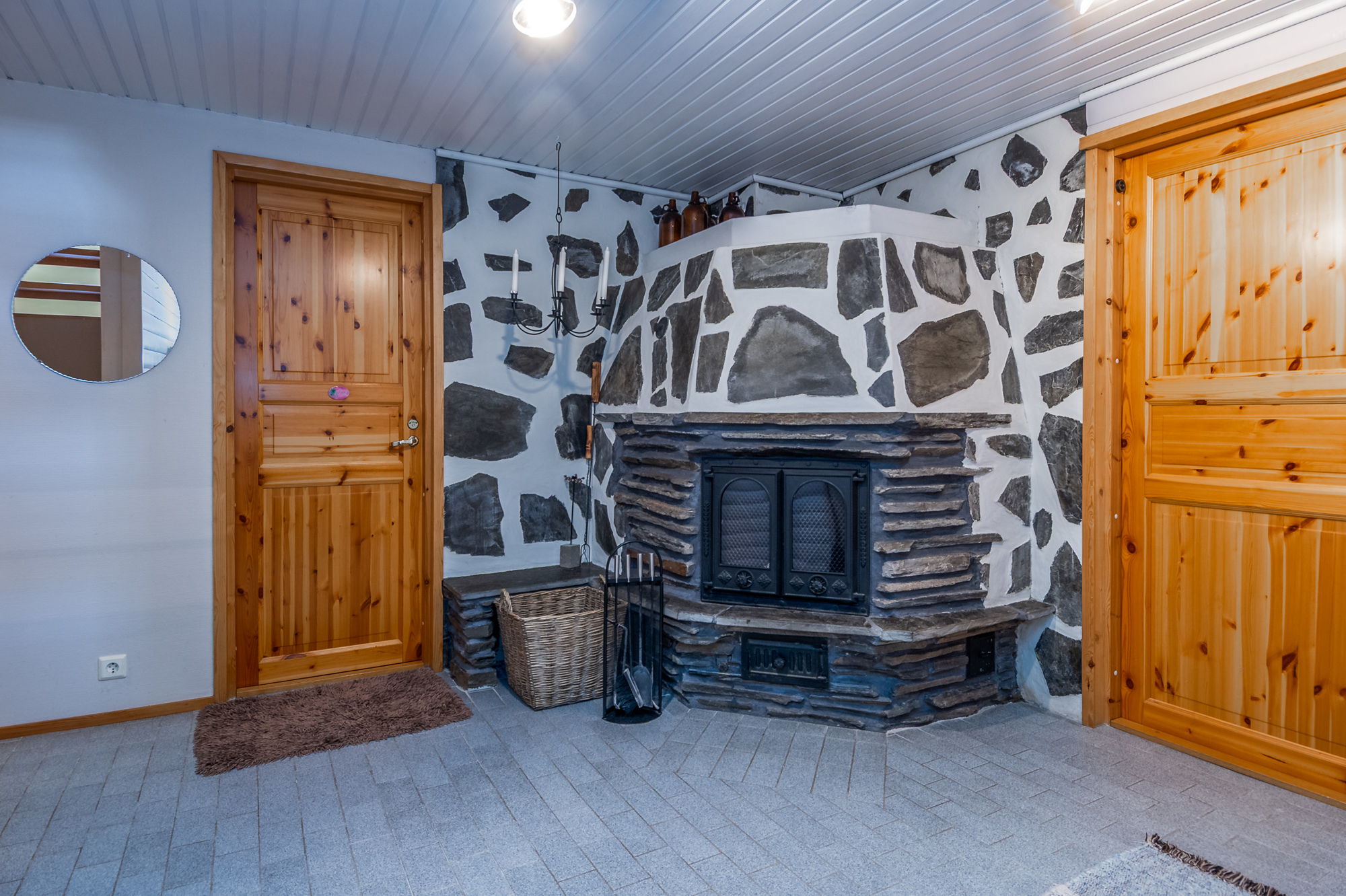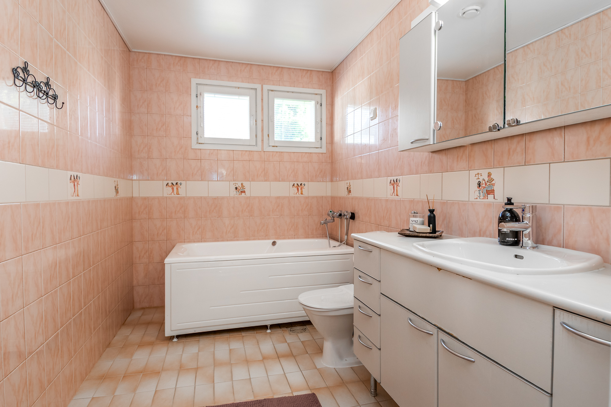 Isot kylpyhuoneet molemmissa asuinkerroksissa - saunatilat kellarikerroksessa. Suihku siten asunnon jokaisessa kerroksessa. Kaikissa pesutiloissa lattialämmitys (vesikierto).