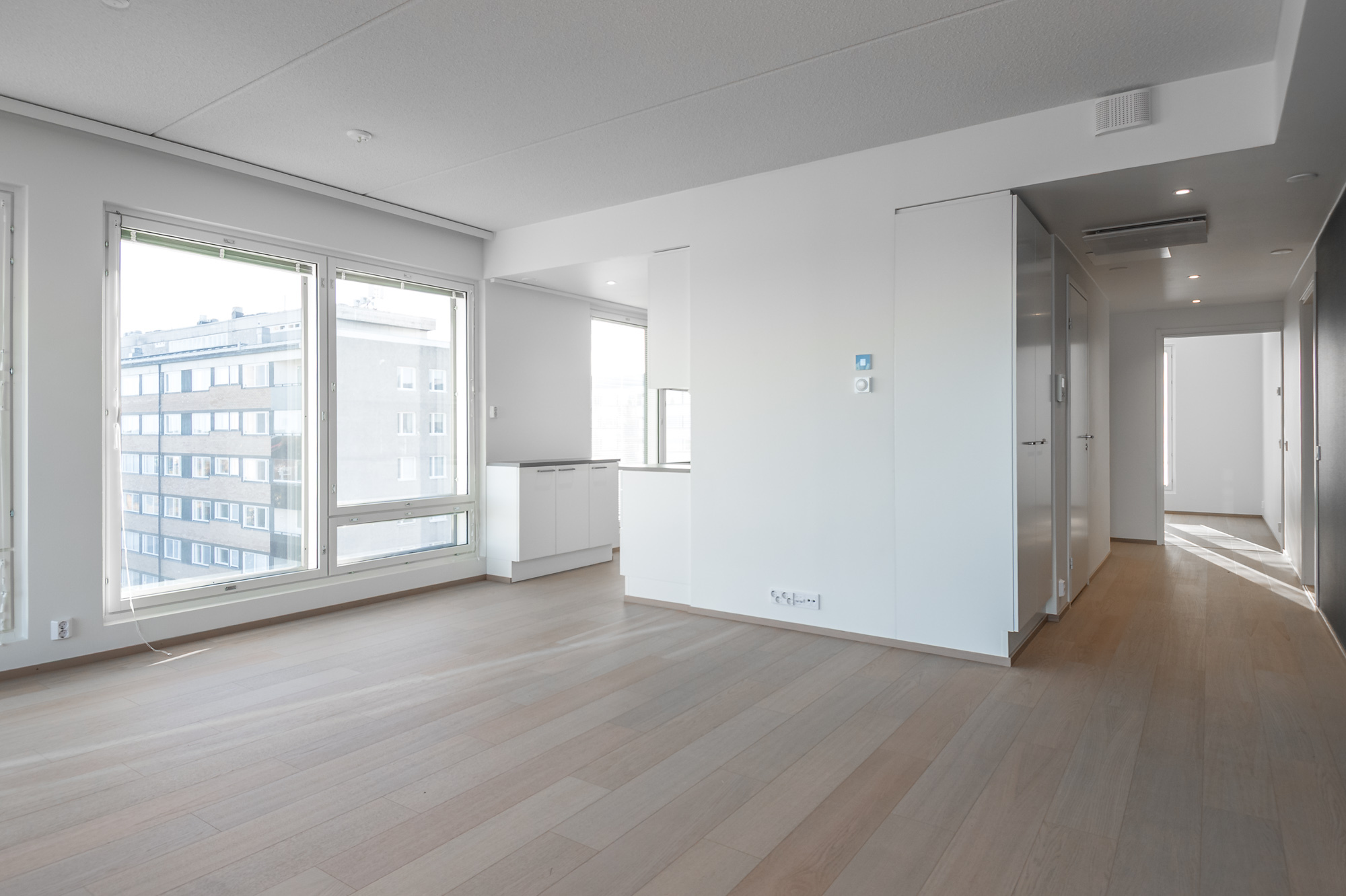 En modern och ljus trerummare på 7:e våningen i ett våningshus byggt 2022 på eftertraktat område i Vasa centrum. Från de stora fönstren öppnar sig en fantastisk och öppen stadsutsikt mot havet och Metviken. Huset ligger nära all service i kärncentrum och alla läroanstalter.
