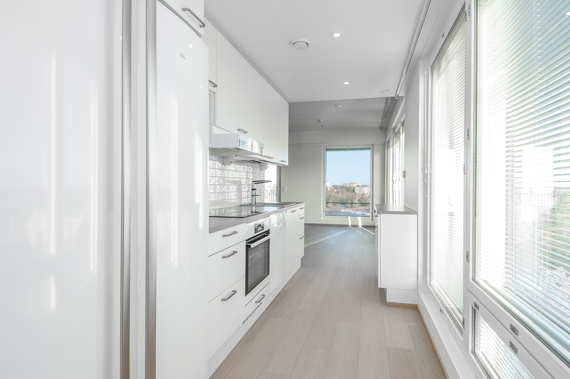 Tämä uudiskohde on laadukkaasti sisustettu. Avarasta olohuoneesta avautuu upeat näkymät ja tilasta on kulku lasitetulle parvekkeelle. Keittiötila yhdistyy olohuoneeseen. Molemmissa makuuhuoneissa vaatekaapistot ja toisessa lisäksi ranskalainen parveke. Kaikissa huonetiloissa on kaunis tammipintainen ohutpuulattia. Kylpyhuoneessa tilaa pesutornille. Koko asunnossa on vesikiertoinen lattialämmitys ja koneellinen ilmanvaihto sekä viilennys!