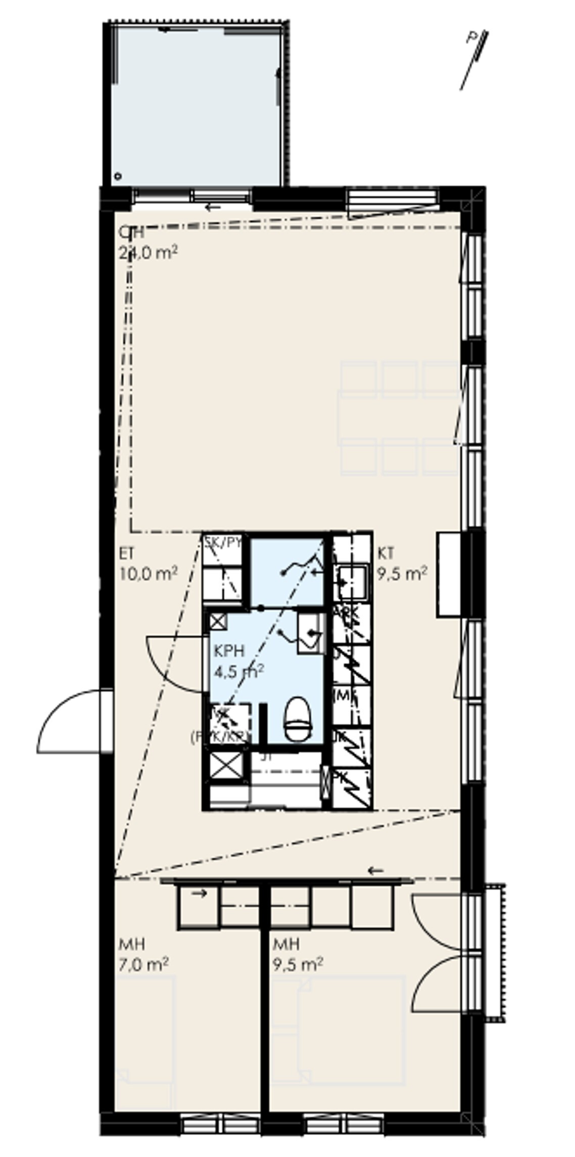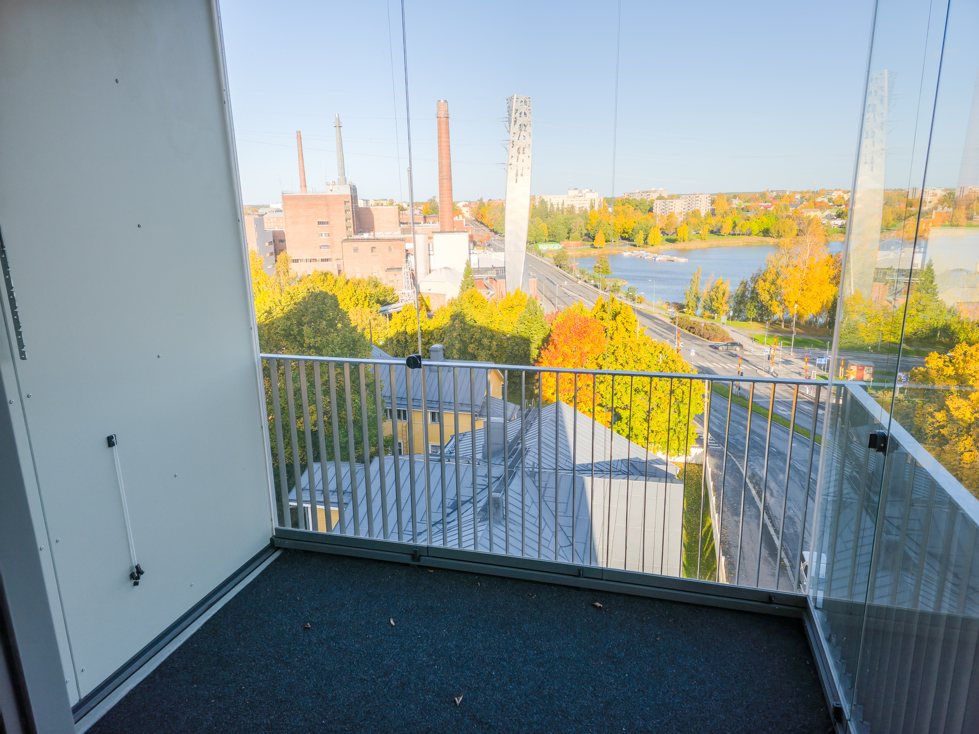 Lasitettu parveke avautuu pohjoiseen ja itään.