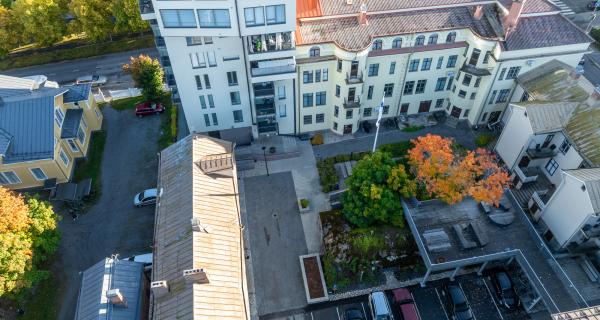 Detta nybyggda objekt är smakfullt inrett. Från det öppna vardagsrummet öppnar sig en fin utsikt och har direkt utgång till den inglasade balkongen. Köksutrymmet i samband med vardagsrummet. Båda sovrummen har egna klädskåp, och det ena har dessutom en fransk balkong. I alla rum finns ett vackert parkettgolv i ek. I badrummet finns plats för ett tvätt-torn. Hela lägenheten har vattenburen golvvärme samt mekanisk ventilation och kylning!