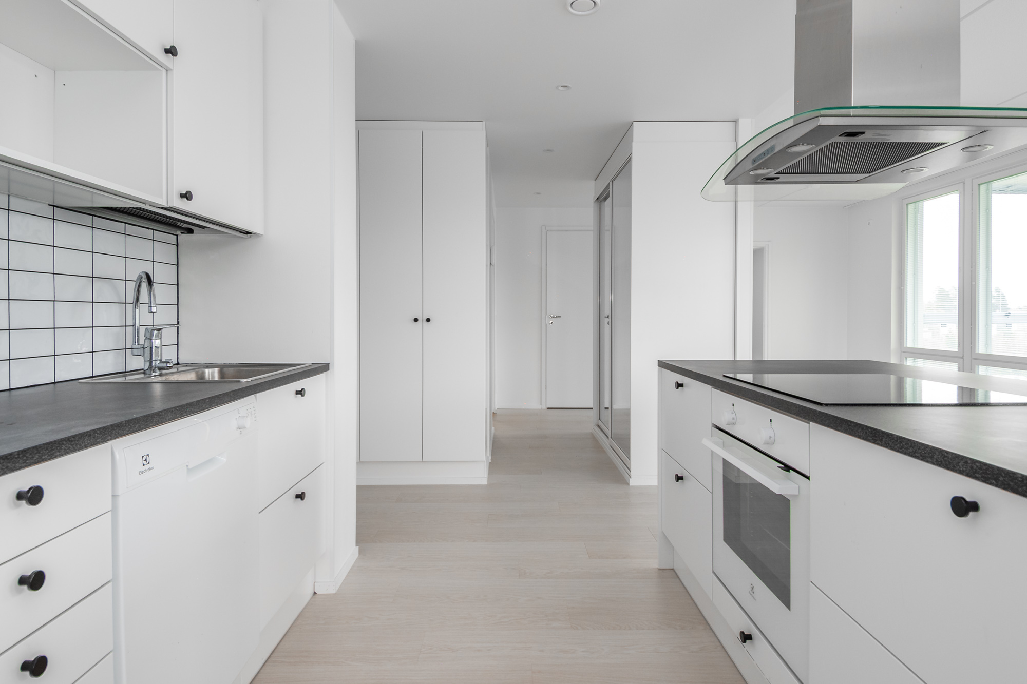 Uutta vastaava, erittäin hyväpohjainen päätyasunto Melaniemessä vuonna 2023 valmistuneessa taloyhtiössä. Valoisa, 4. kerroksen asunto, missä keittiö ja olohuone ovat yhtä, avaraa tilaa, mistä on käynti suurelle, lasitetulle parvekkeelle. Kolme makuuhuonetta, joista kaksi on hieman yhteistiloista erillään.