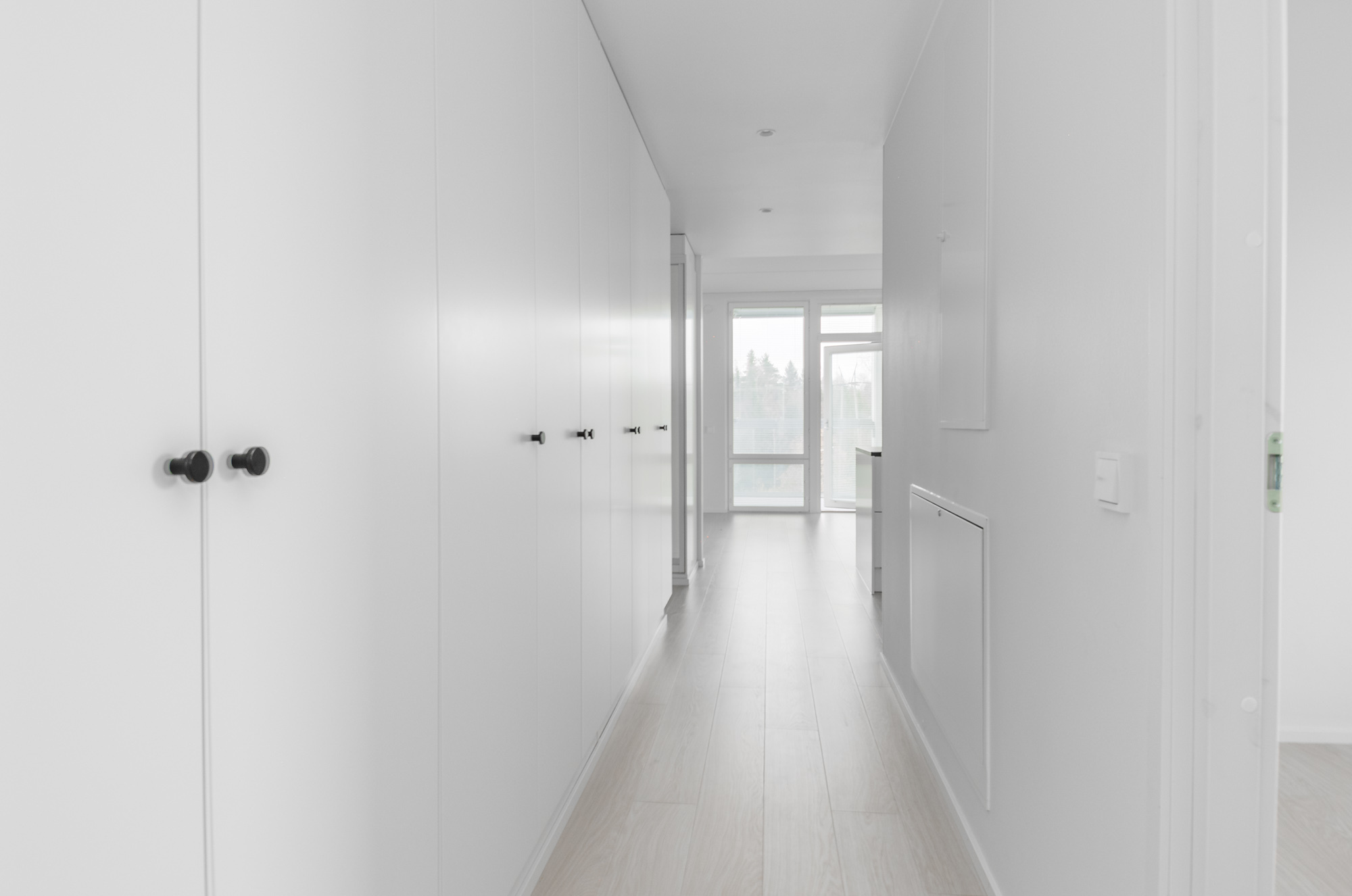 Koko asunnossa on vesikiertoinen lattialämmitys (ei pattereita seinillä) ja huoneistokohtainen ilmanvaihto lämmön talteenotolla. Oman saunan yhteydessä tilava kylpyhuone, missä on tilaa pesutornille. Lisäksi erillinen wc.