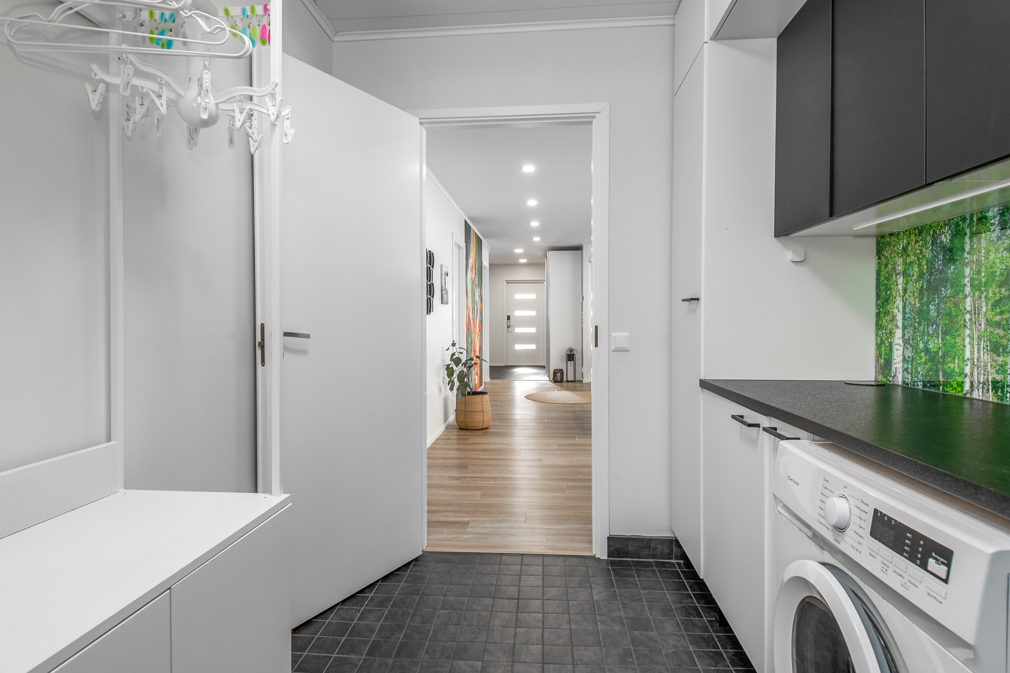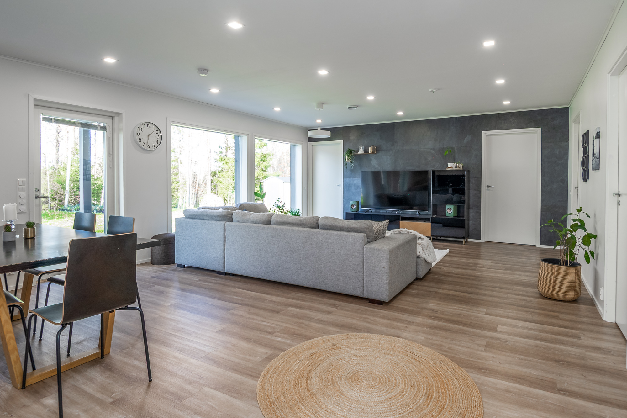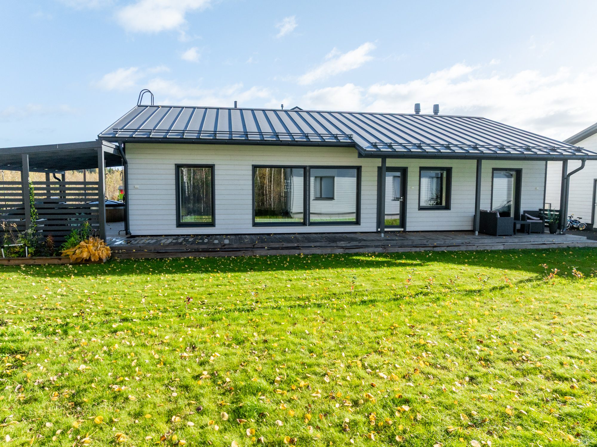 Yksitasoinen, vuonna 2021 valmistunut Kastelli-talo Länsiniityn suositulla ja rauhallisella asuntoalueella. Keittiö yhdessä olohuoneen kanssa muodostaa hulppean oleskelutilan - isot ikkunat tuovat paljon valoa tilaan. Talossa on neljä makuuhuonetta - yksi huoneista on hiukan muista erillään. Kaksi vaatehuonetta, joista toinen käytännöllisesti heti sisääntuloeteisen yhteydessä. Kodinhoitohuoneesta kulku isolle katetulle terassille, missä on ruokailu- ja oleskelutilan lisäksi myös palju. Katettu terassi kiertää talon kahdelta puolen. Erillinen kahden auton iso autotallirakennus sähkötoimisilla nosto-ovilla. Tallissa myös pieni toimistohuone sekä wc. Öljynerottelukaivo ja vesipiste. Kaikki tilat (myös autotalli) lämpiävät edullisesti maalämmöllä!
