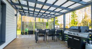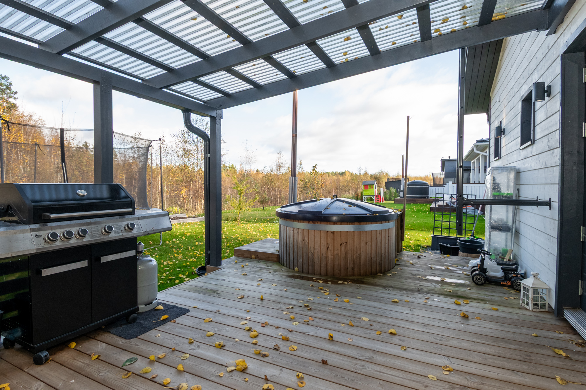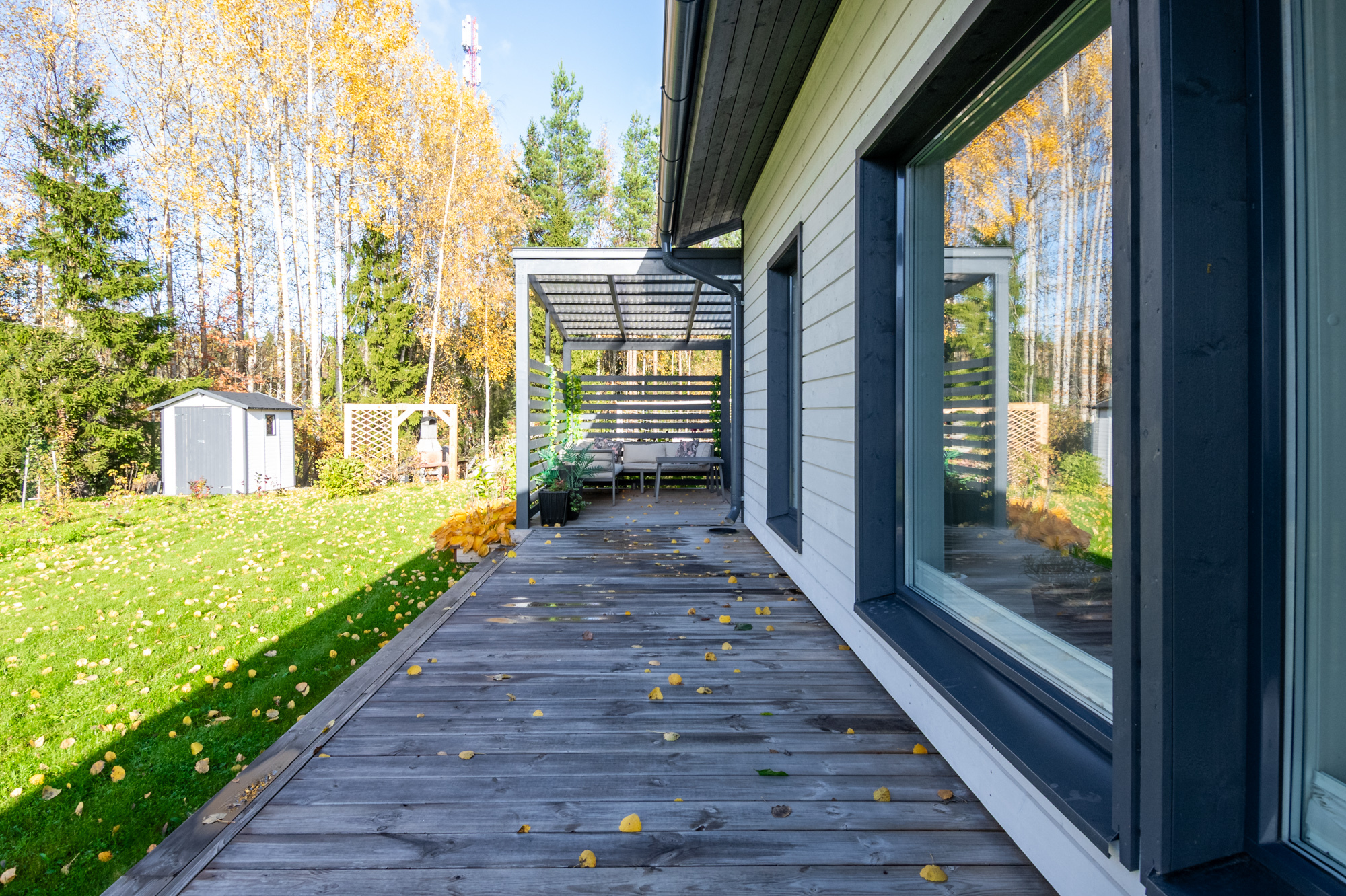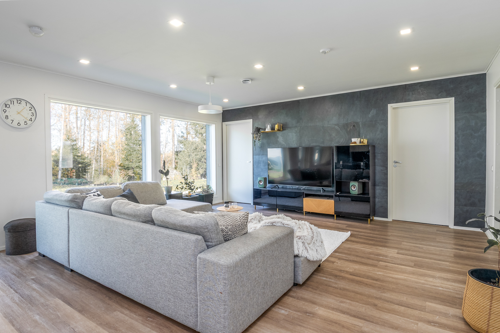Yksitasoinen, vuonna 2021 valmistunut Kastelli-talo Länsiniityn suositulla ja rauhallisella asuntoalueella. Keittiö yhdessä olohuoneen kanssa muodostaa hulppean oleskelutilan - isot ikkunat tuovat paljon valoa tilaan. Talossa on neljä makuuhuonetta - yksi huoneista on hiukan muista erillään. Kaksi vaatehuonetta, joista toinen käytännöllisesti heti sisääntuloeteisen yhteydessä. Kodinhoitohuoneesta kulku isolle katetulle terassille, missä on ruokailu- ja oleskelutilan lisäksi myös palju. Katettu terassi kiertää talon kahdelta puolen. Erillinen kahden auton iso autotallirakennus sähkötoimisilla nosto-ovilla. Tallissa myös pieni toimistohuone sekä wc. Öljynerottelukaivo ja vesipiste. Kaikki tilat (myös autotalli) lämpiävät edullisesti maalämmöllä!