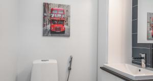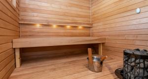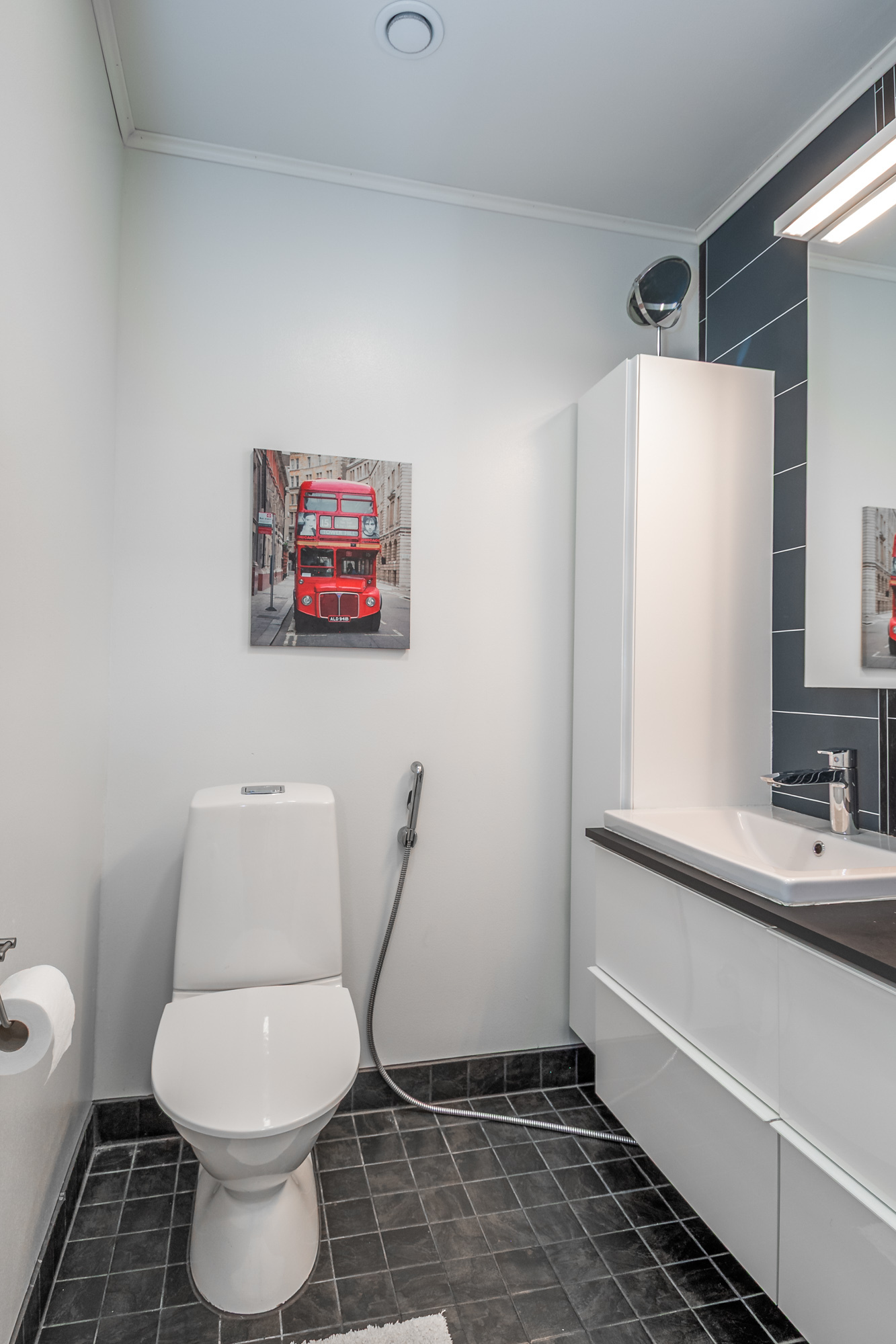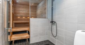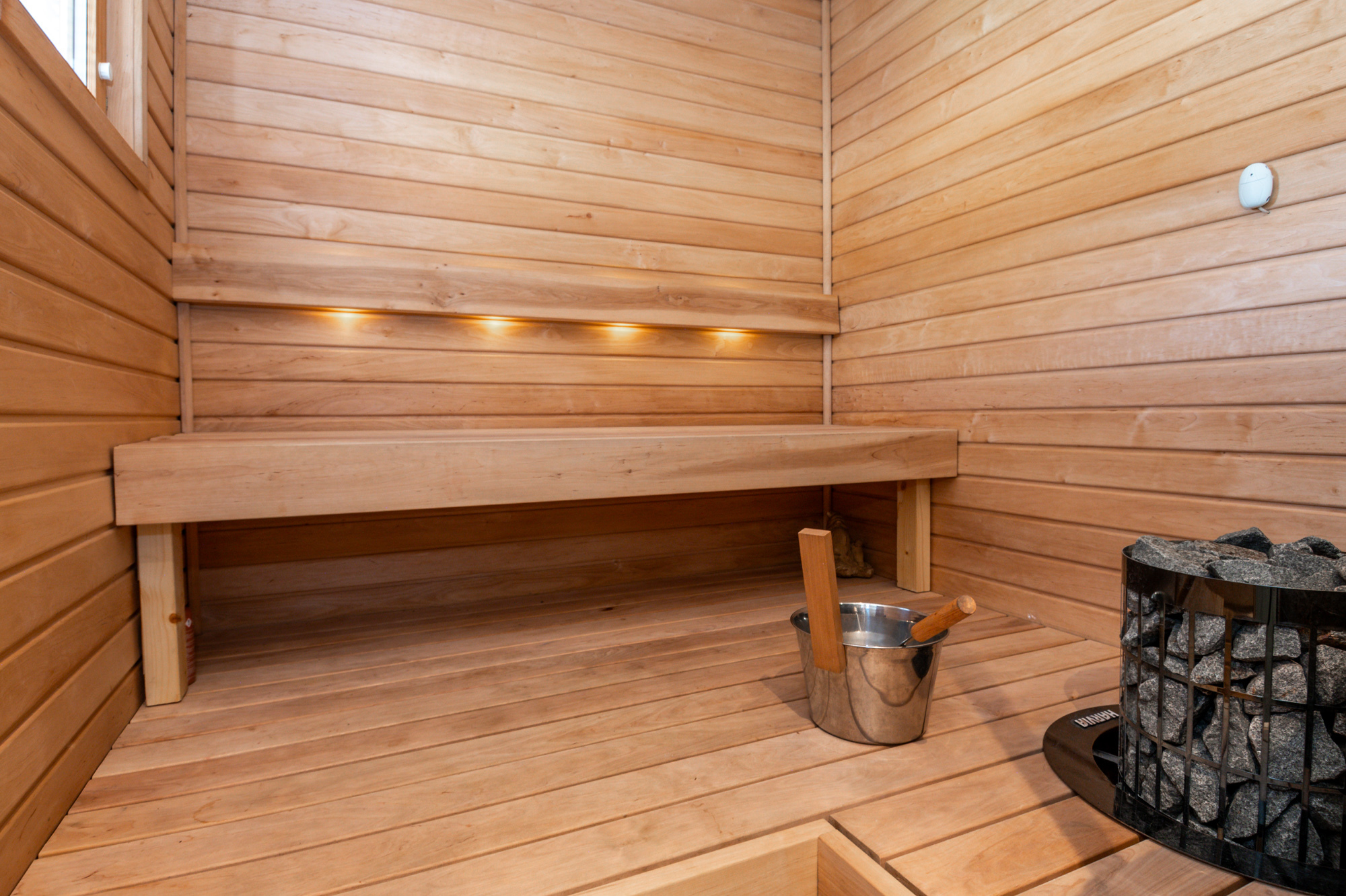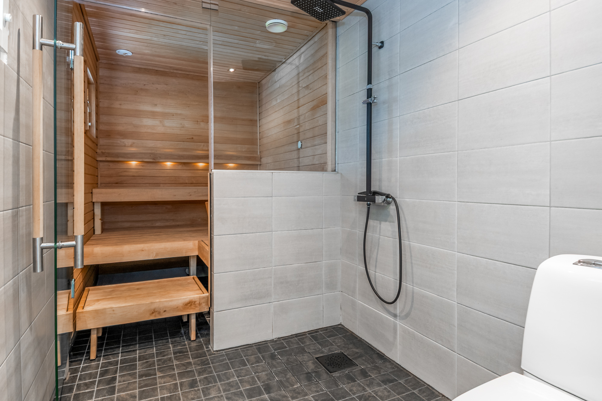 Kylpyhuone saunan yhteydessä. Lisäksi erillinen wc.