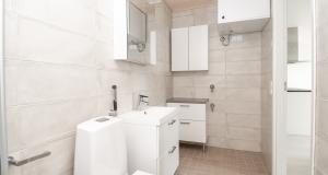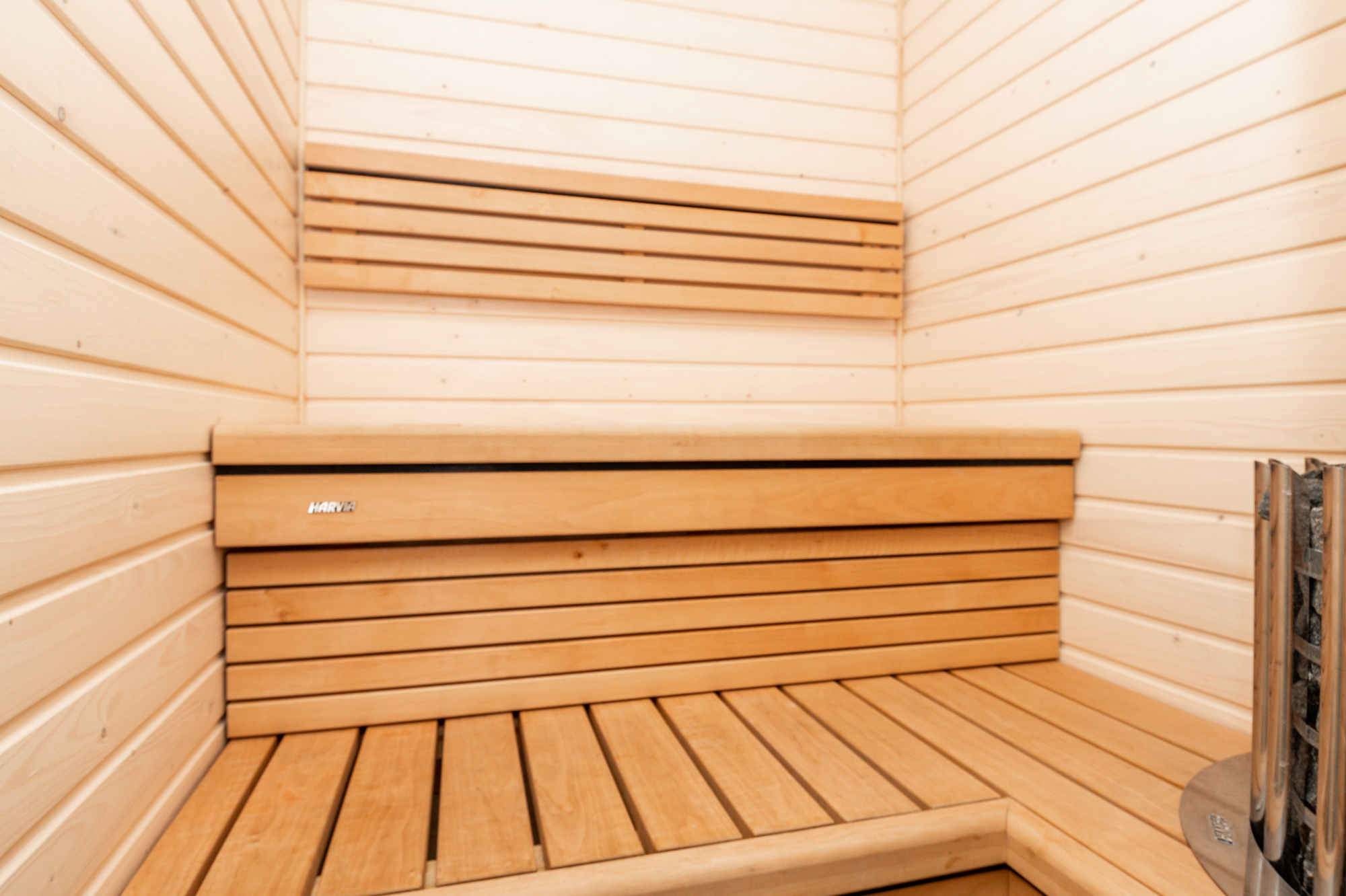 Hela lägenheten har vattenburen golvvärme (inga element på väggarna) och bostadsenhetlig ventilation med värmeåtervinning. I anslutning till den egna bastun finns ett rymligt badrum med plats för tvättorn. Dessutom finns en separat wc. Klädrum.