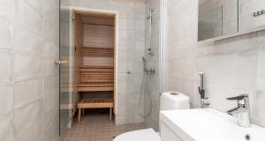 Koko asunnossa on vesikiertoinen lattialämmitys (ei pattereita seinillä) ja huoneistokohtainen ilmanvaihto lämmön talteenotolla. Oman saunan yhteydessä tilava kylpyhuone, missä on tilaa pesutornille. Lisäksi erillinen wc. Vaatehuone.