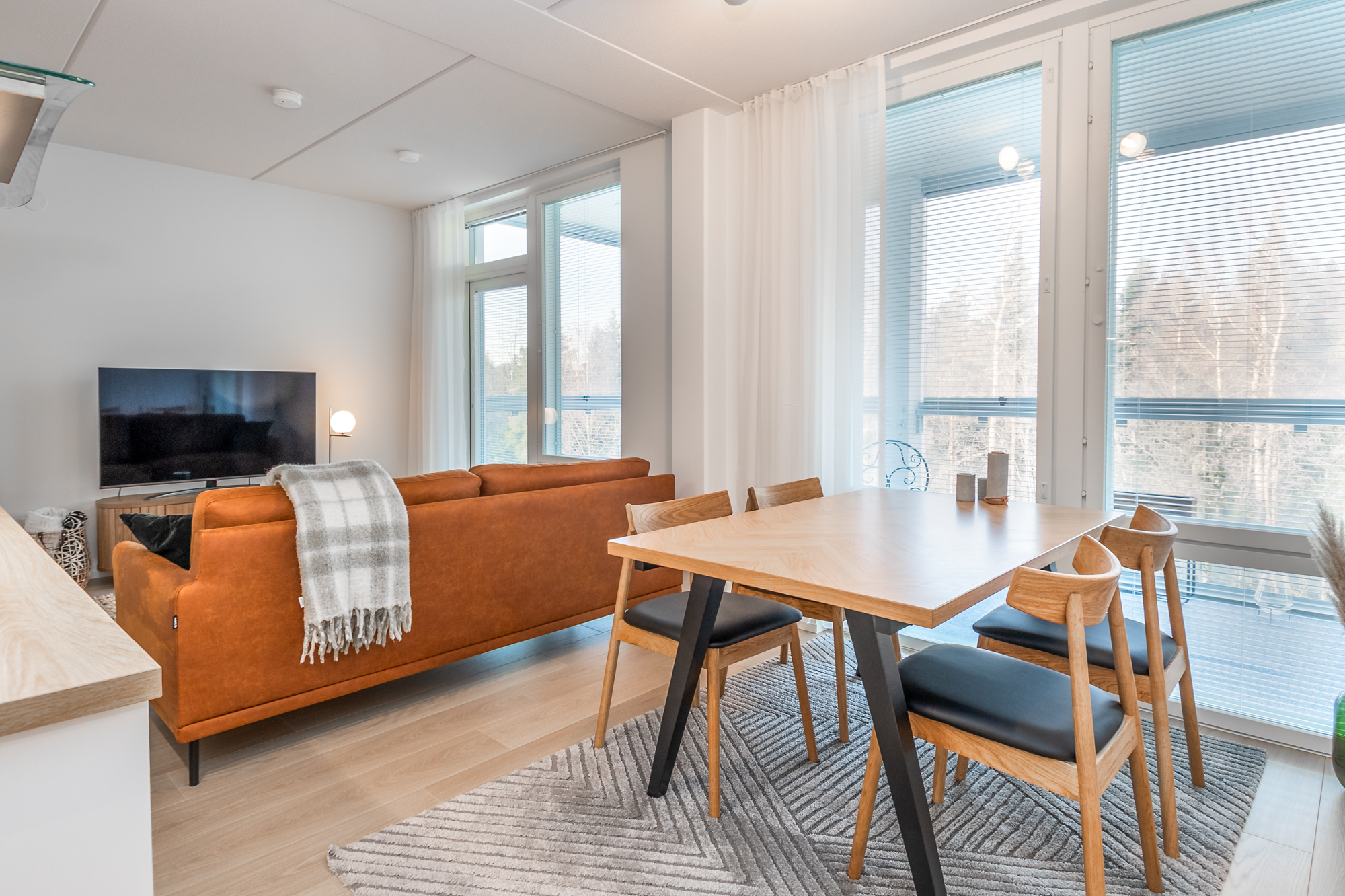 Bostadsbolagets gemensamma utrymmen är likaså i nytt skick – boendet i detta hus är bekymmersfritt. Förbindelserna till olika delar av staden är utmärkta. Körtiden till centrum är endast cirka 5 minuter. Området erbjuder också fantastiska friluftsmöjligheter.