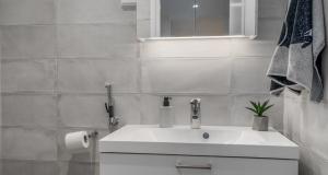Hela lägenheten har vattenburen golvvärme (inga element på väggarna) och bostadsenhetlig ventilation med värmeåtervinning. I anslutning till den egna bastun finns ett rymligt badrum med plats för tvättorn. Dessutom finns en separat wc. Klädrum.