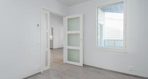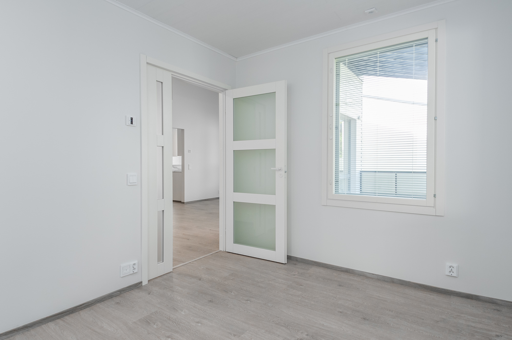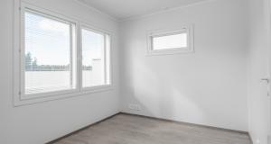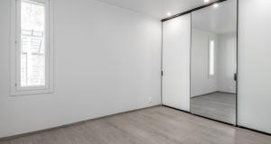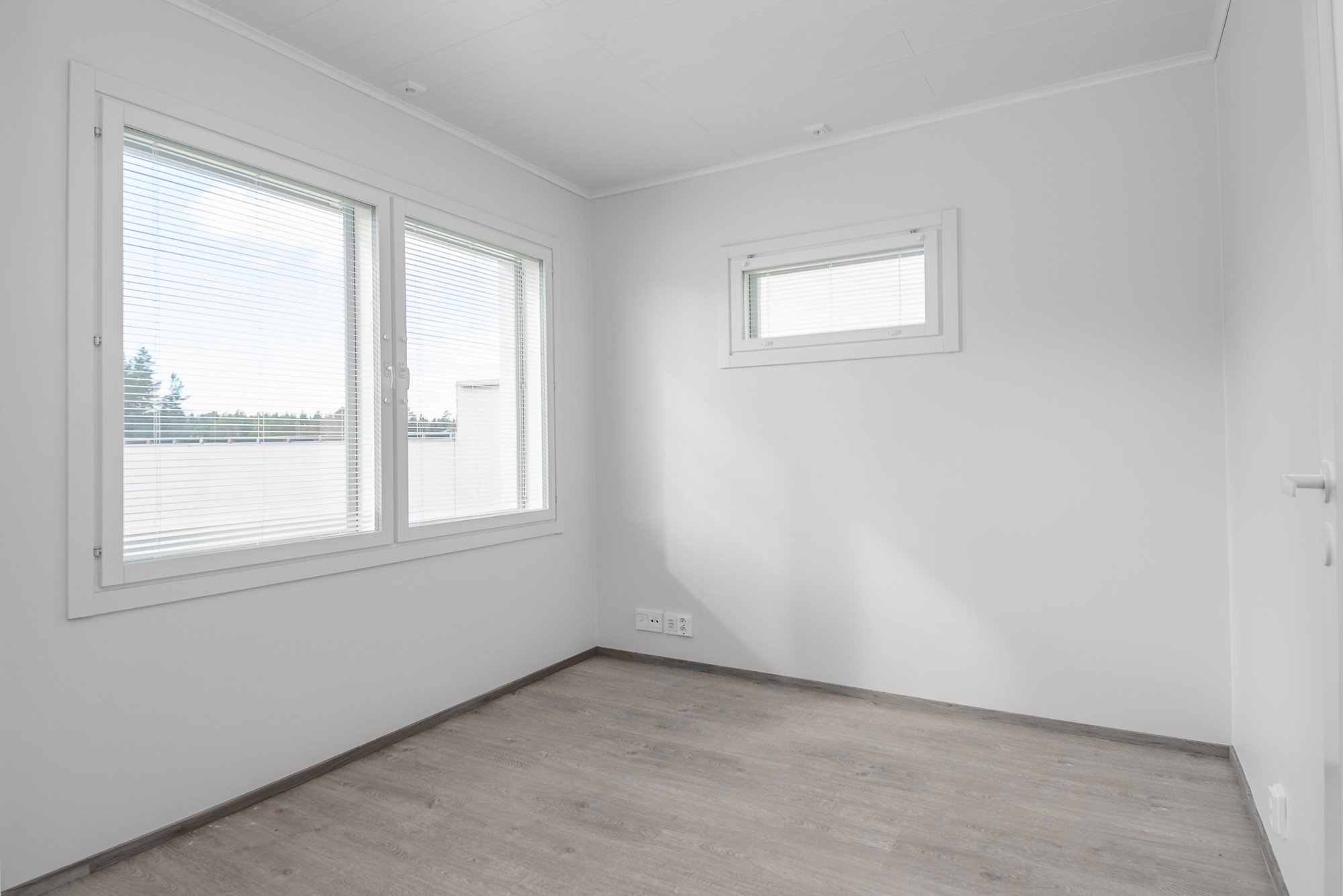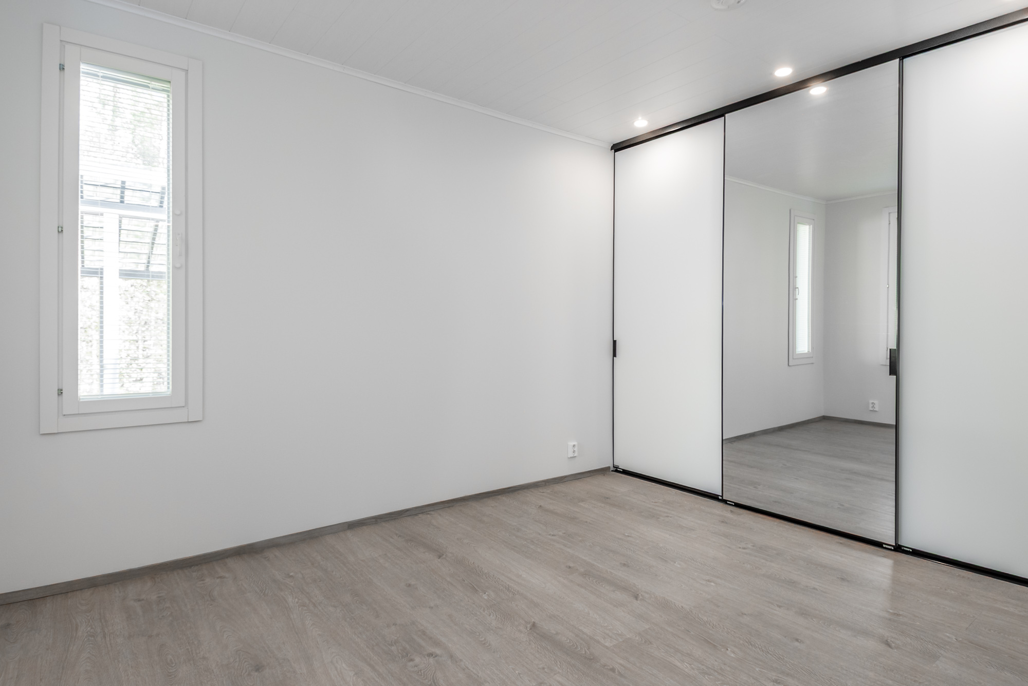 Yksi makuuhuone alakerrassa, vaatekaapisto. Yläkerrassa kaksi isompaa makuuhuonetta (molemmissa vaatekaapisto) sekä yksi pienempi huone.