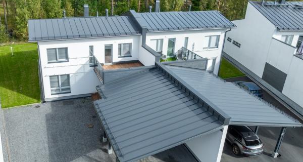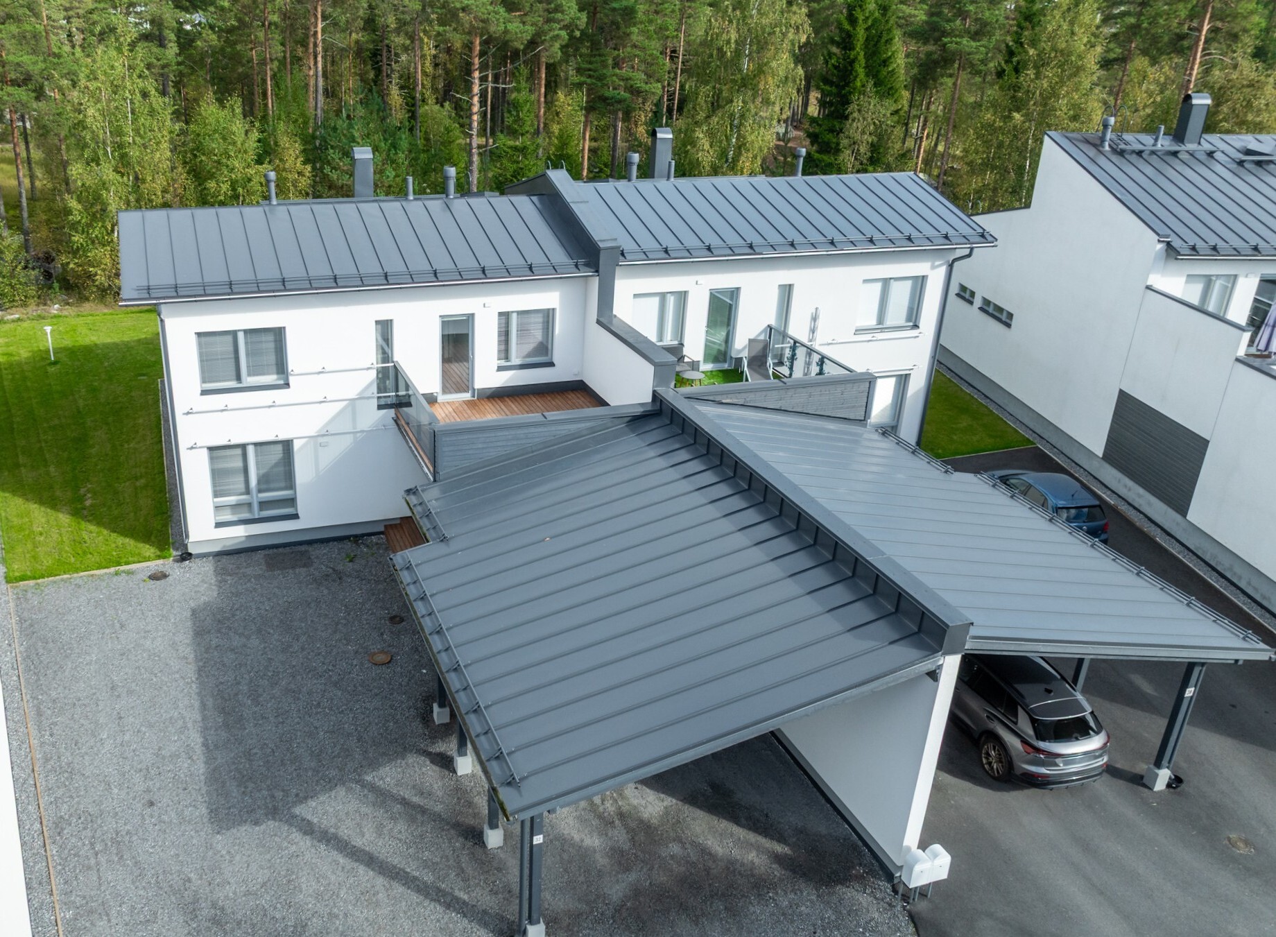 Autokatos kahdelle autolle - katoksen yhteydessä lämmin varatotila ja tekninen tila. Sisäänkäynnin yhteydessä vielä 16 m² katettua tilaa!