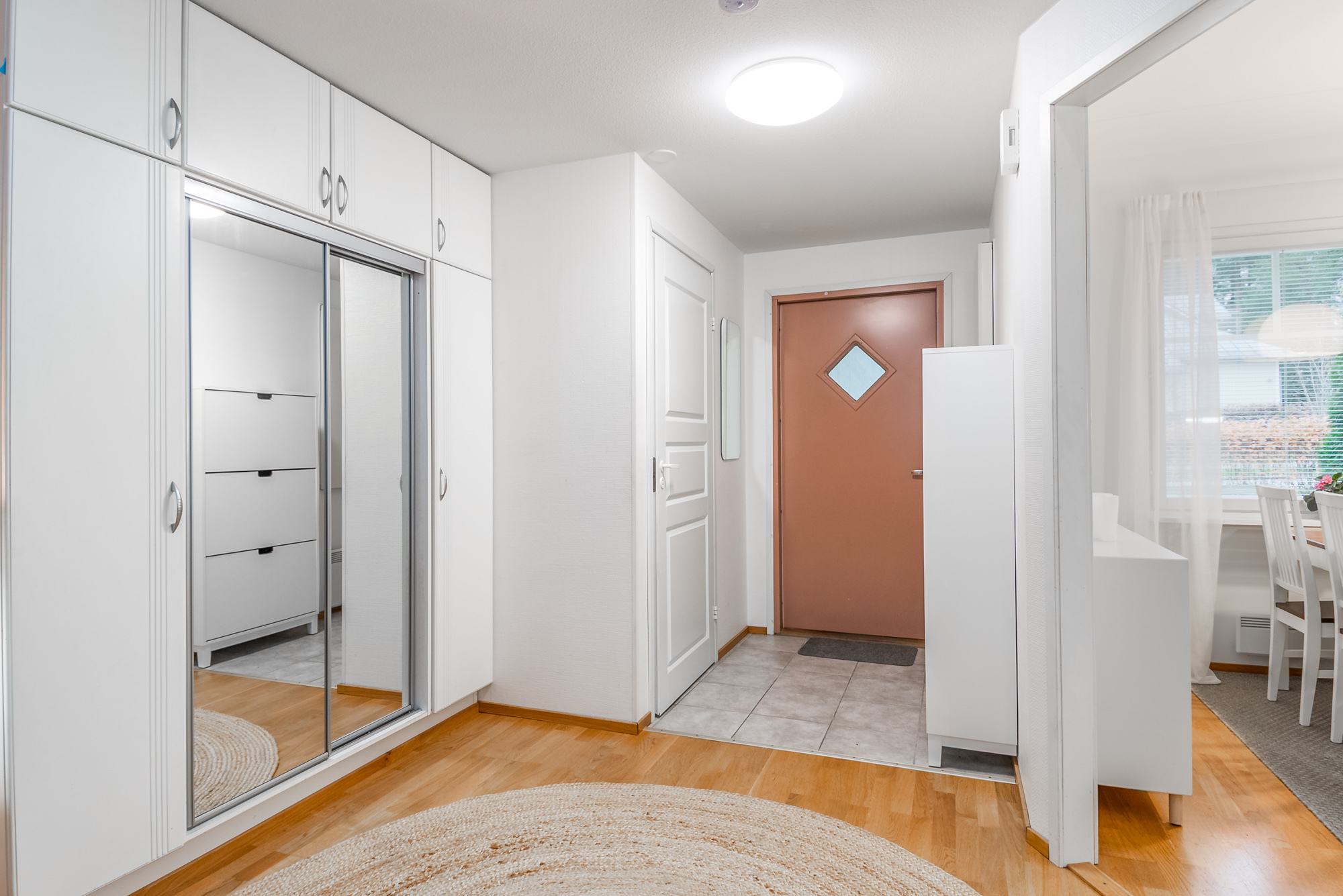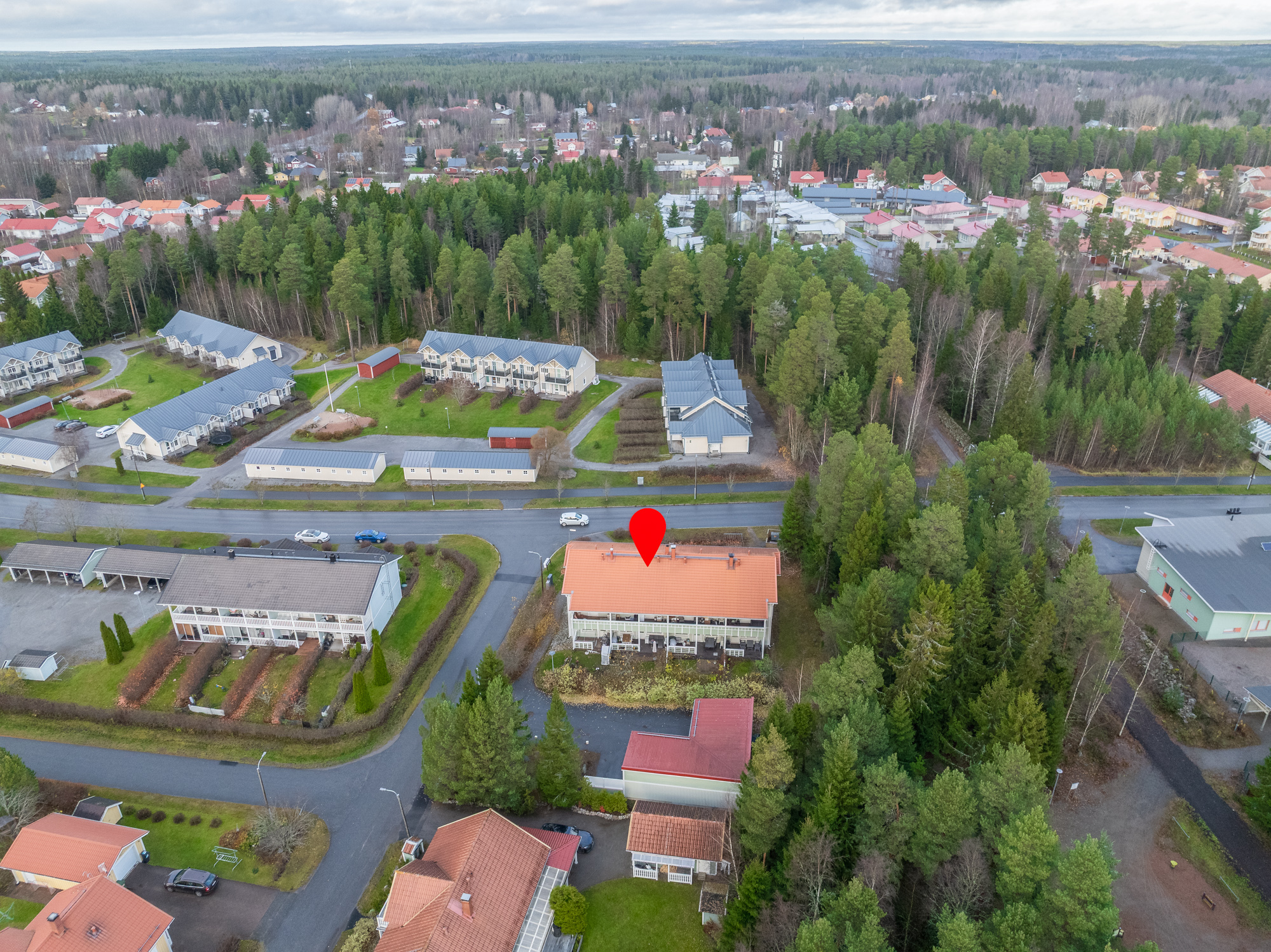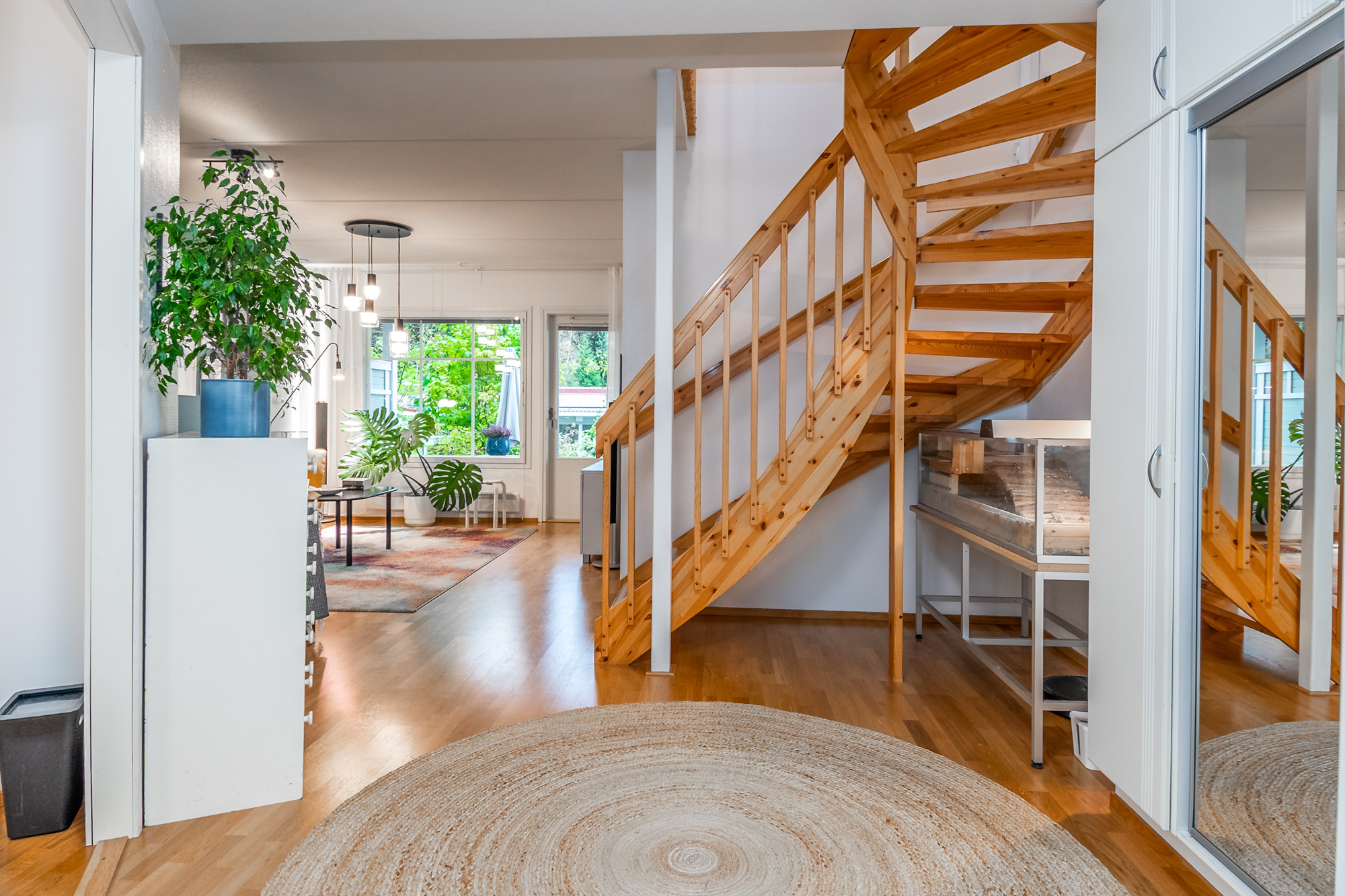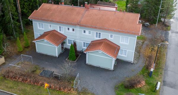 Rymlig radhuslägenhet i två plan, på 105 m², med bra och funktionell planlösning. Huset är byggt 2006 och har ett ljust kök samt ett rymligt vardagsrum med Uuniseppäs ackumulerande Loisto-spis (eldstadsinsats förnyad 2021). En luftvärmepump installerades 2024. Utgång från vardagsrummet till terrassen i sydvästläge och den skyddade gårdsplanen.