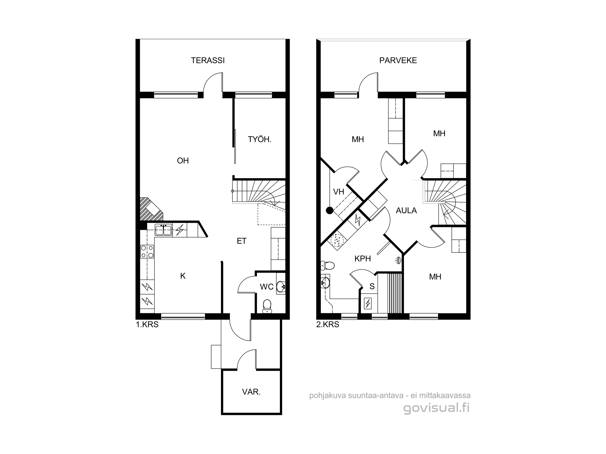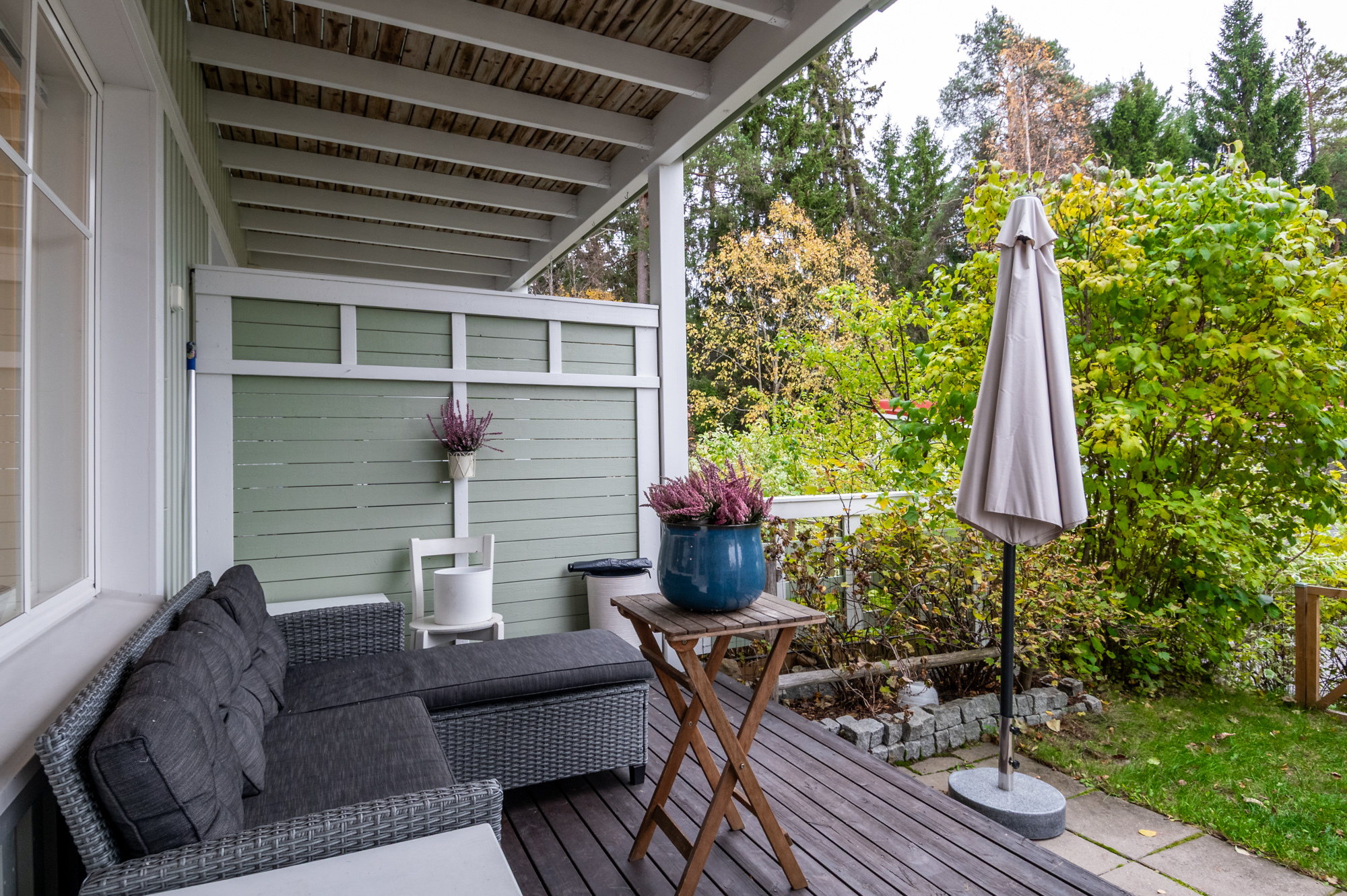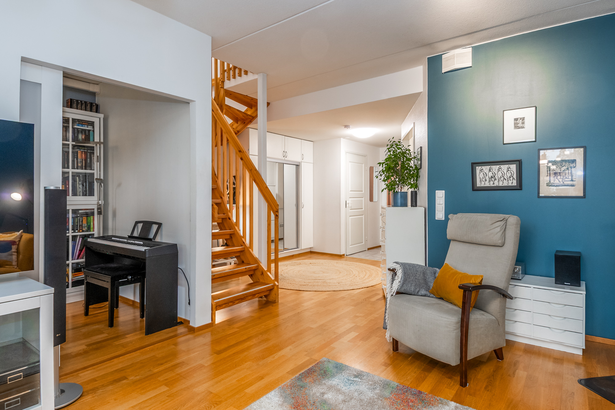 Rymlig radhuslägenhet i två plan, på 105 m², med bra och funktionell planlösning. Huset är byggt 2006 och har ett ljust kök samt ett rymligt vardagsrum med Uuniseppäs ackumulerande Loisto-spis (eldstadsinsats förnyad 2021). En luftvärmepump installerades 2024. Utgång från vardagsrummet till terrassen i sydvästläge och den skyddade gårdsplanen.