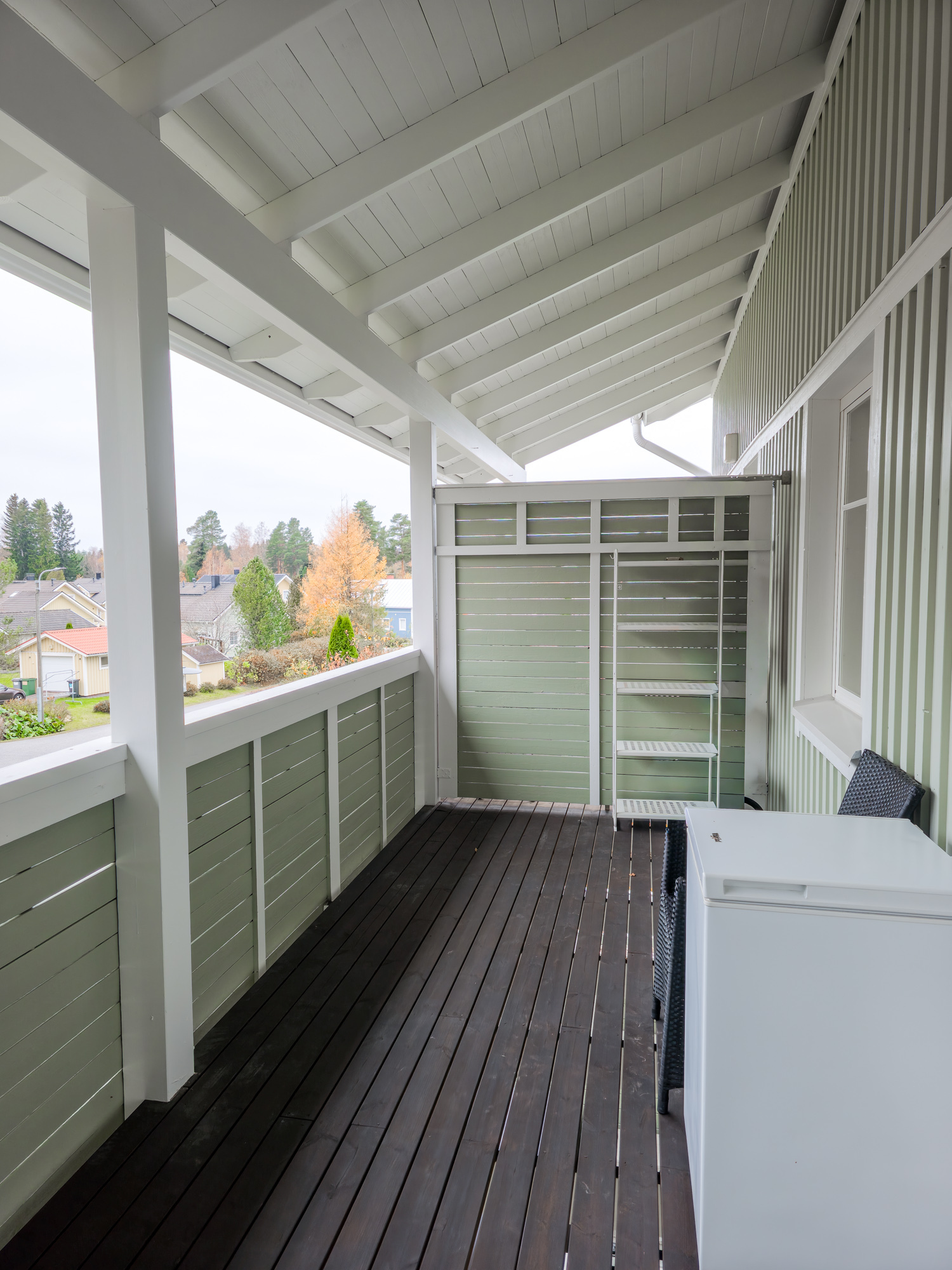 Ulkovarasto asunnon yhteydessä. Vaatehuone, vaatekaapistot. Käyttöullakko.