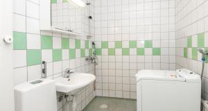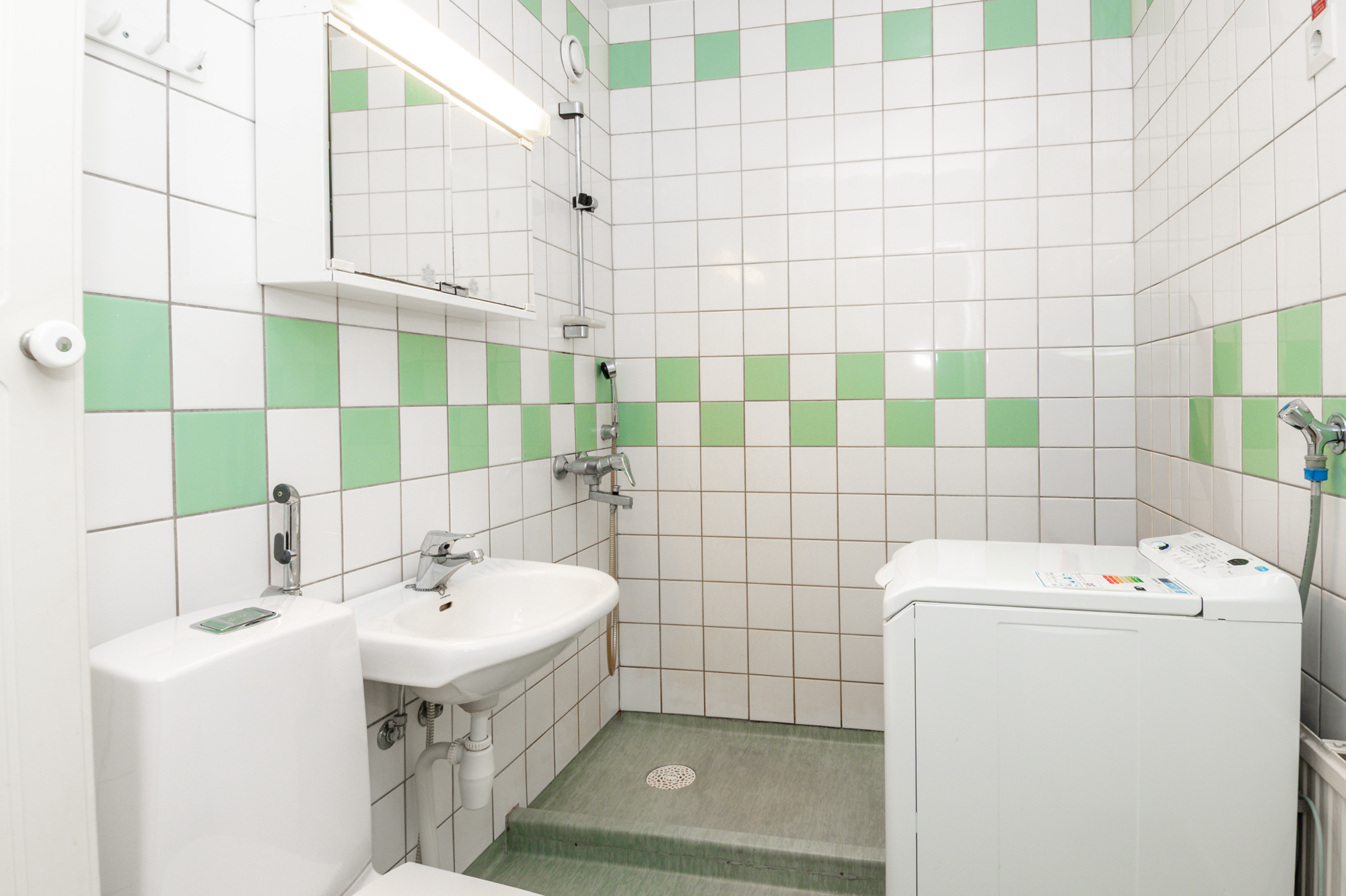 Tilava kylpyhuone, pesukoneliitäntä.