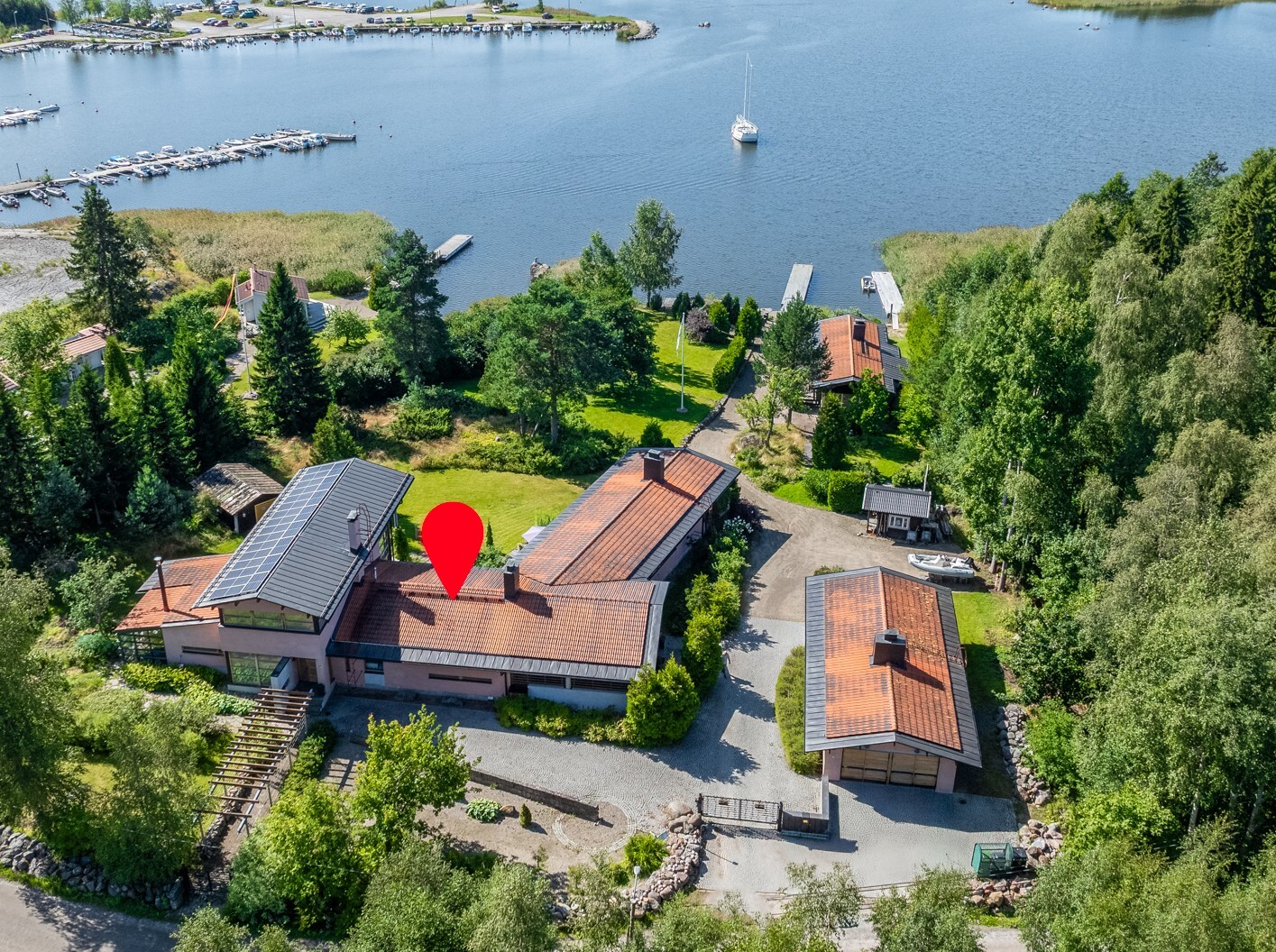 Det rymliga och uppvärmda garaget för två bilar underlättar vardagen. Vid stranden finns en separat bastubyggnad (2007) som är mycket mer än bara en bastu – här ryms även sovrum, kök och vardagsrum, vilket gör den till ett perfekt gästhus. De generösa terrasserna kring byggnaderna bjuder in till umgänge utomhus, alldeles vid strandkanten.