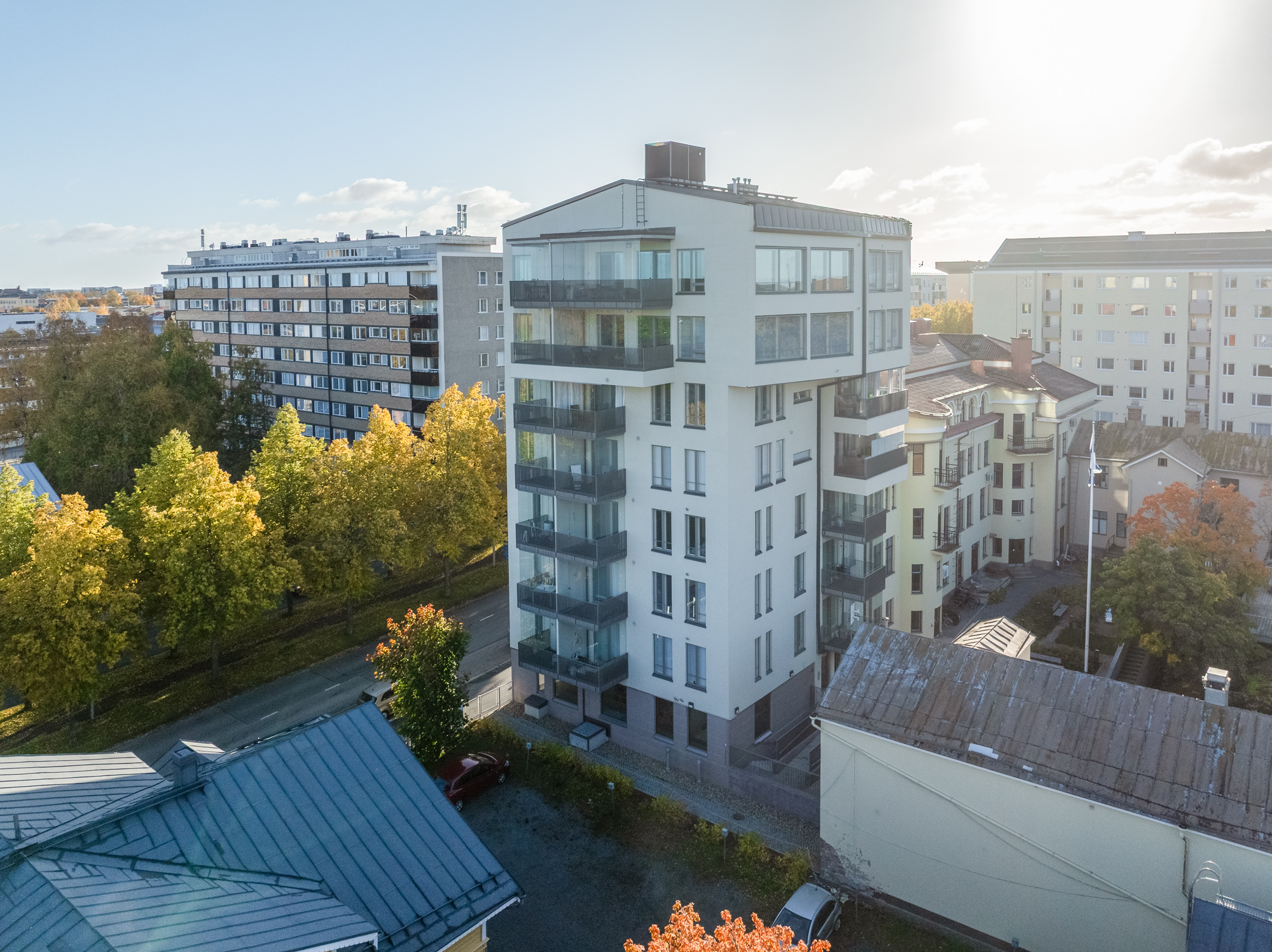 Moderni ja valoisa kolmio viidennessä (5.) kerroksessa vuonna 2022 valmistuneessa taloyhtiössä erittäin halutulla alueella Vaasan keskustassa. Suurista ikkunoista ja parvekkeelta avautuu upeat ja avarat kaupunkimaisemat merelle ja Onkilahdelle. Talo sijaitsee lähellä ydinkeskustan palveluja ja kaikkia oppilaitoksia.