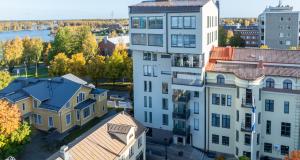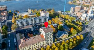Denna moderna och ljusa trerummare i Vasa centrum ligger på femte våningen i ett höghus byggt 2022. Från bostadens stora fönster öppnar sig en fantastisk och öppen stadsutsikt mot Metviken. Huset ligger nära service i centrum och Vasas läroanstalter.
