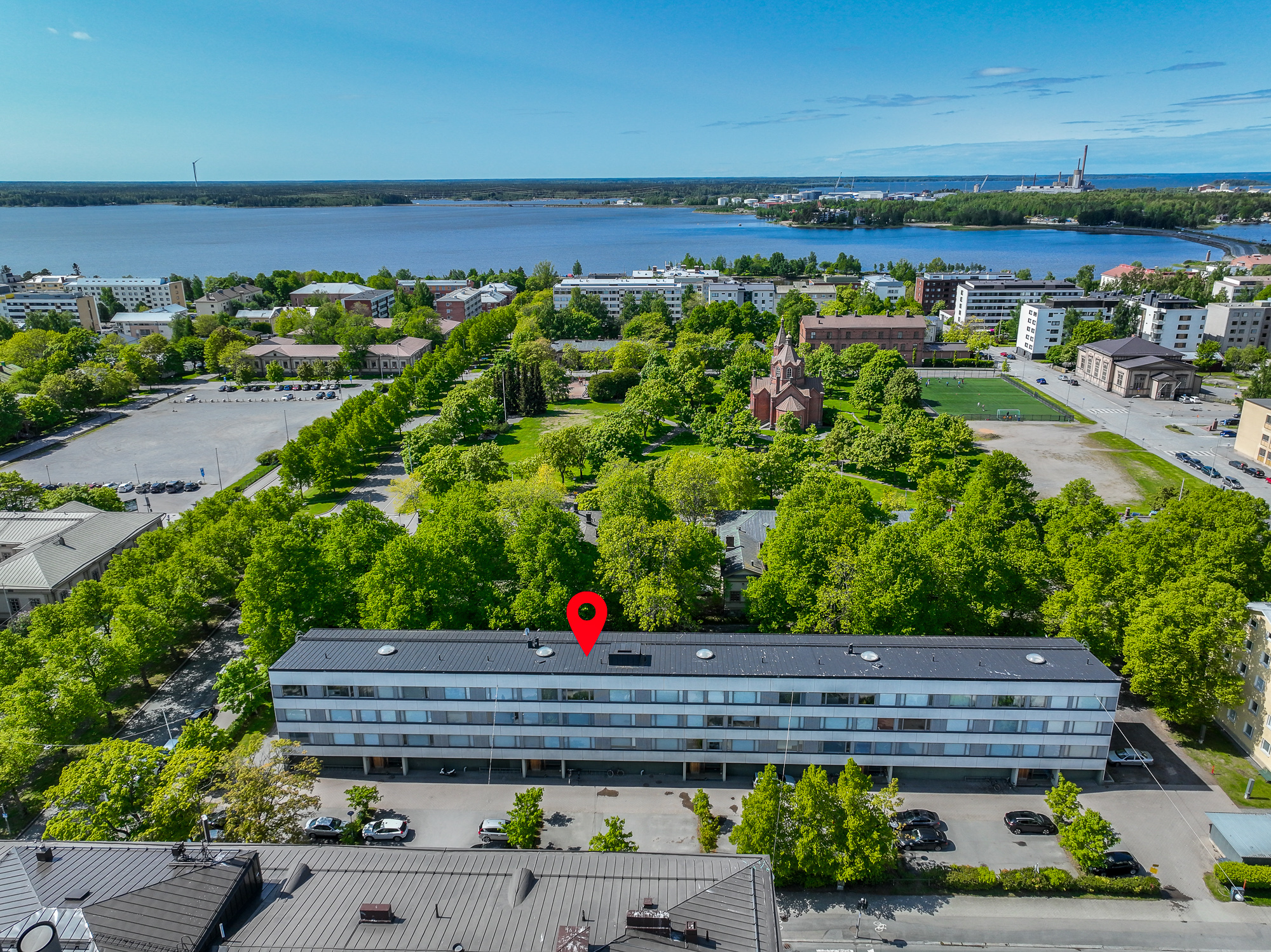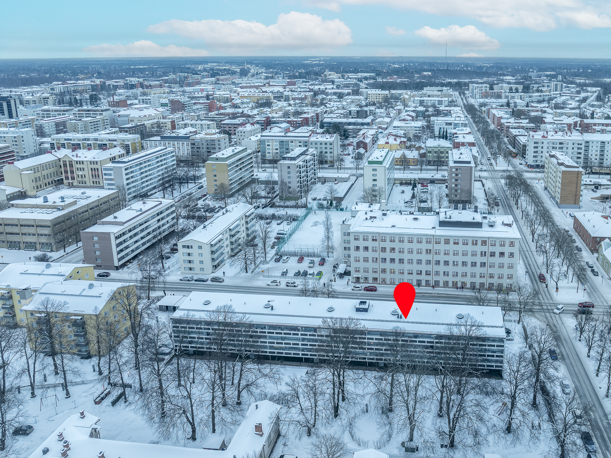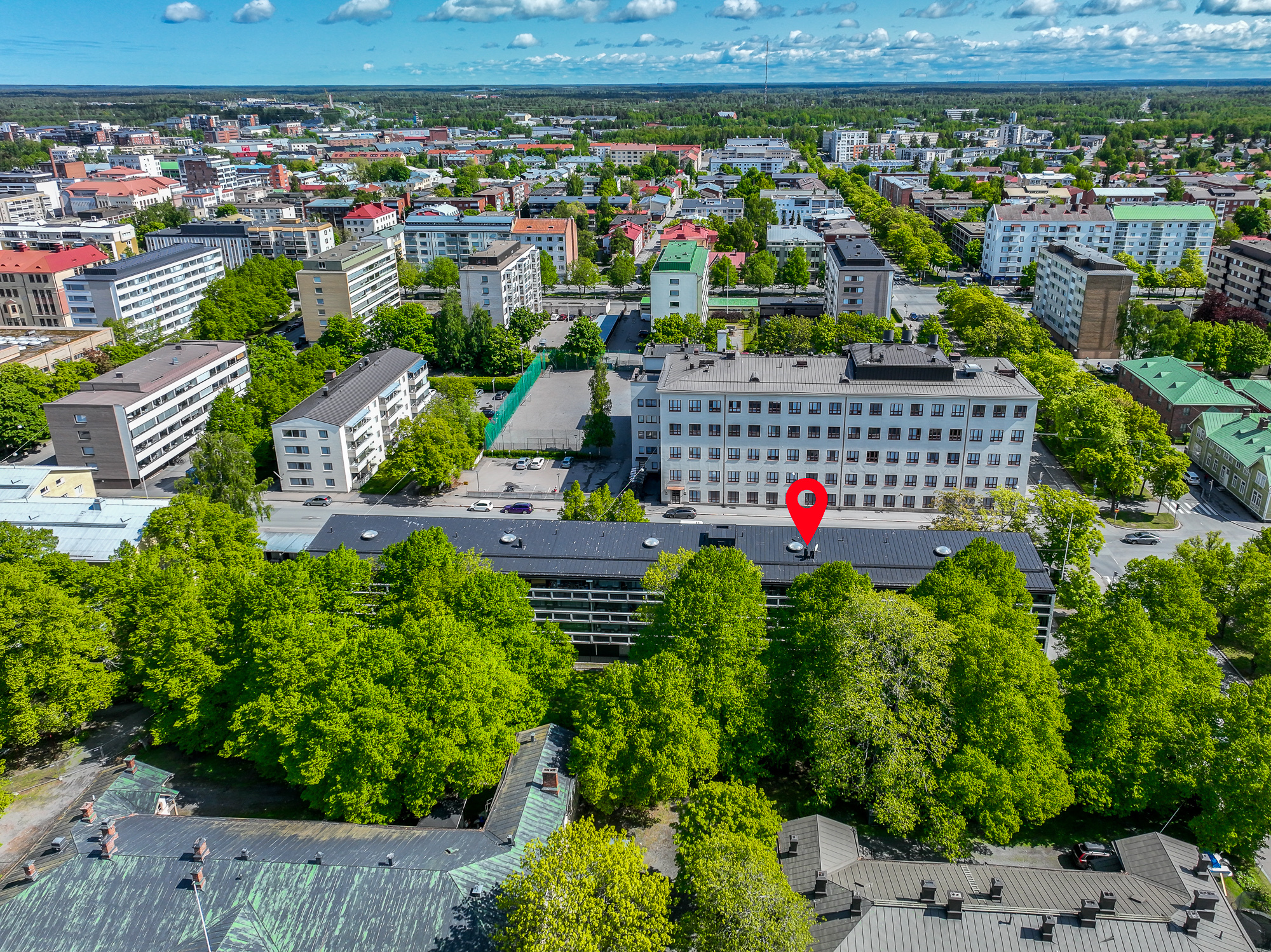 Remontoitu, toisen (2) kerroksen valoisa läpitalonasunto rauhallisella alueella lähellä ydinkeskustaa. Keittiön vieressä tila, joka tällä hetkellä käytössä työskentelytilana ja missä on tilava vaatekomero liukuovilla. Makuuhuone ja olohuone asunnon länsipuolella muodostavat tilavat oleskelutilat. Makuuhuoneessa reilunkokoinen liukuovikaapisto. Olohuoneesta käynti lasitetulle, koko asunnon levyiselle parvekkeelle, mistä on vehreät ja suojaisat, puistomaiset näkymät länteen. Todella upeasti remontoitu kylpyhuone, jota on suurennettu ja saatu näin tilaa myös erilliselle kodinhoitotilalle. Taloyhtiötä peruskorjattu paljolti; mm käyttövesiputkisto uusittu, viemärit pinnoitettu, ikkunat uusittu, parveke- ja piharemontti tehty sekä taloyhtiön saunaosasto upeasti uusittu. Taloyhtiö on kaukolämmössä ja oma tontilla. Ljus genomgående lägenhet i andra våningen med lugnt läge nära kärncentrum. Köket och matplatsen ett gemensamt utrymme, utrymmet är försett med stora fönster. Ett rymligt sovrum med klädskåp med skjutdörrar. Vardagsrummet har utgång till den stora, inglasade balkongen med parkliknande utsikt mot väst. Verkligen smakfullt renoverat badrum som har förstorats och därmed gett utrymme även för en separat klädvårdsplats. Husbolaget har genomfört många grundläggande reparationer; bl.a. förnyande av bruksvattenrören, beläggning av avloppen, förnyande av fönstren, balkong- och gårdsrenovering, samt renovering av husbolagets bastuavdelning. Husbolag med egen tomt och i fjärrvärme.