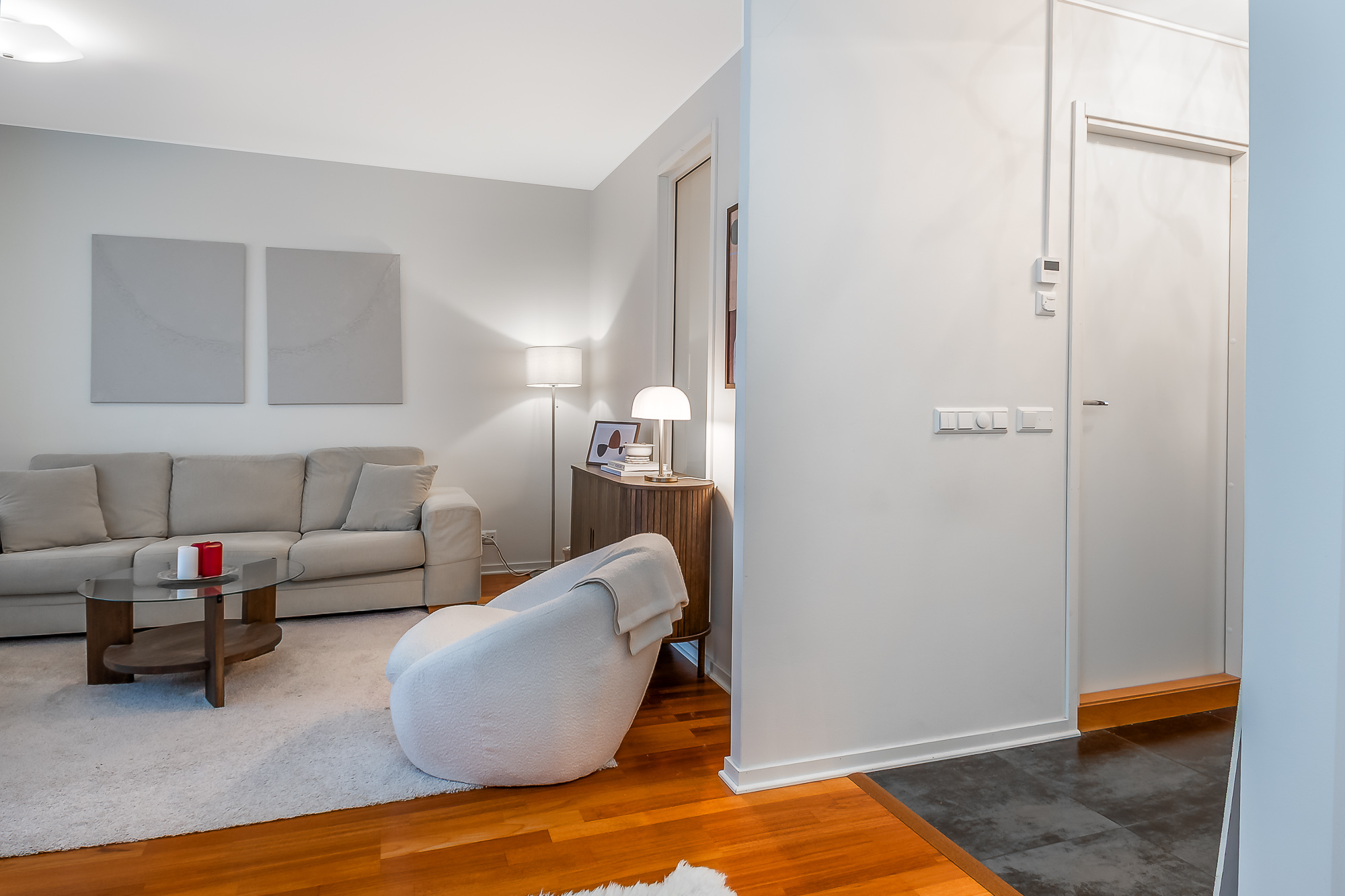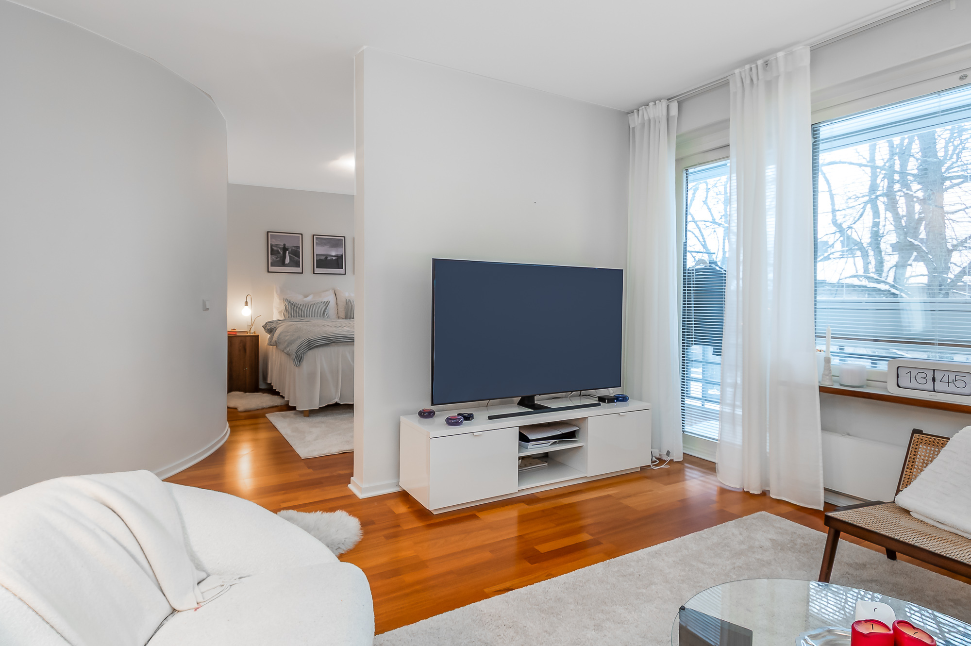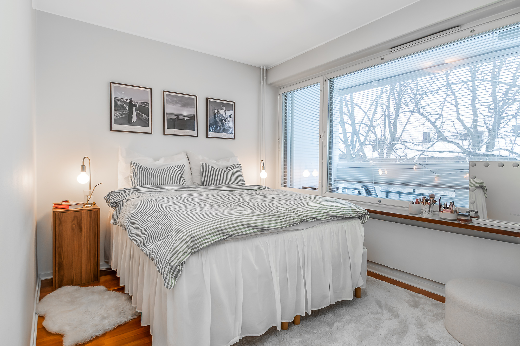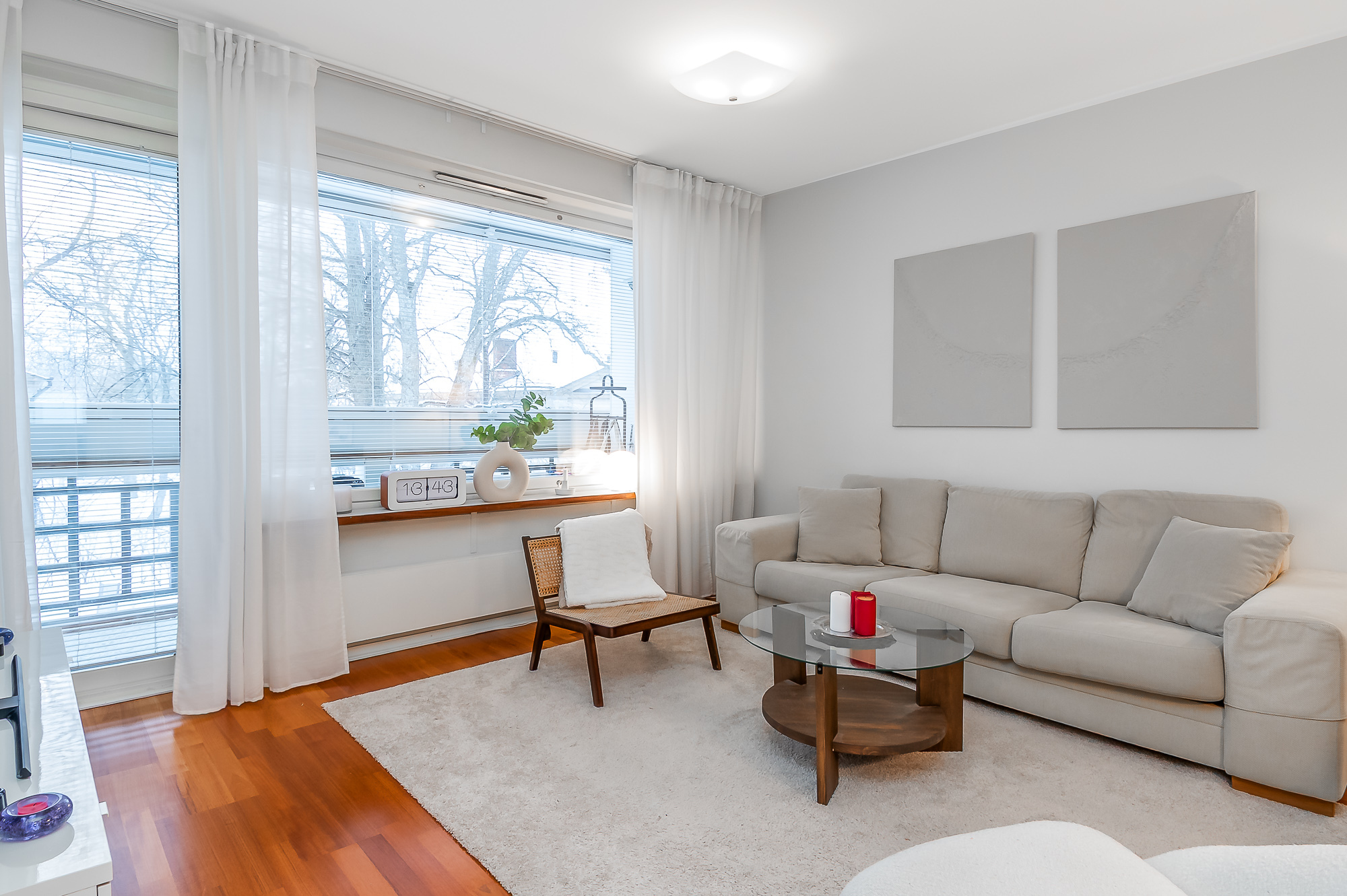 Remontoitu, toisen (2) kerroksen valoisa läpitalonasunto rauhallisella alueella lähellä ydinkeskustaa. Keittiön vieressä tila, joka tällä hetkellä käytössä työskentelytilana ja missä on tilava vaatekomero liukuovilla. Makuuhuone ja olohuone asunnon länsipuolella muodostavat tilavat oleskelutilat. Makuuhuoneessa reilunkokoinen liukuovikaapisto. Olohuoneesta käynti lasitetulle, koko asunnon levyiselle parvekkeelle, mistä on vehreät ja suojaisat, puistomaiset näkymät länteen. Todella upeasti remontoitu kylpyhuone, jota on suurennettu ja saatu näin tilaa myös erilliselle kodinhoitotilalle. Taloyhtiötä peruskorjattu paljolti; mm käyttövesiputkisto uusittu, viemärit pinnoitettu, ikkunat uusittu, parveke- ja piharemontti tehty sekä taloyhtiön saunaosasto upeasti uusittu. Taloyhtiö on kaukolämmössä ja oma tontilla. Ljus genomgående lägenhet i andra våningen med lugnt läge nära kärncentrum. Köket och matplatsen ett gemensamt utrymme, utrymmet är försett med stora fönster. Ett rymligt sovrum med klädskåp med skjutdörrar. Vardagsrummet har utgång till den stora, inglasade balkongen med parkliknande utsikt mot väst. Verkligen smakfullt renoverat badrum som har förstorats och därmed gett utrymme även för en separat klädvårdsplats. Husbolaget har genomfört många grundläggande reparationer; bl.a. förnyande av bruksvattenrören, beläggning av avloppen, förnyande av fönstren, balkong- och gårdsrenovering, samt renovering av husbolagets bastuavdelning. Husbolag med egen tomt och i fjärrvärme.